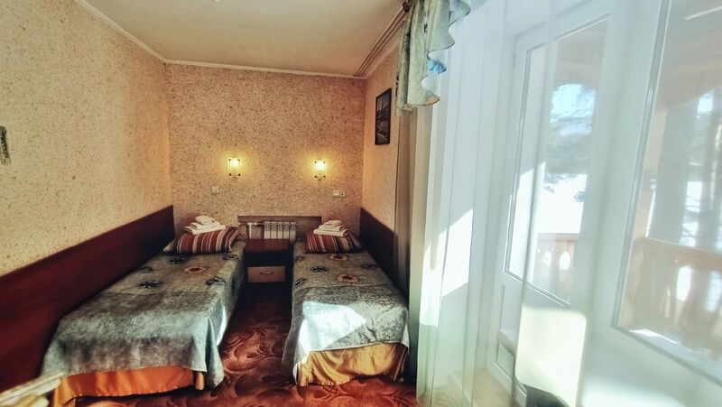 две односпальные кровати, диван, С/у в номере, душ на территории