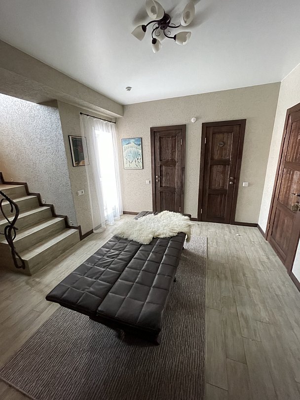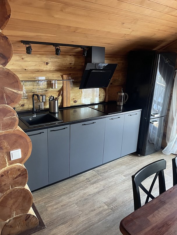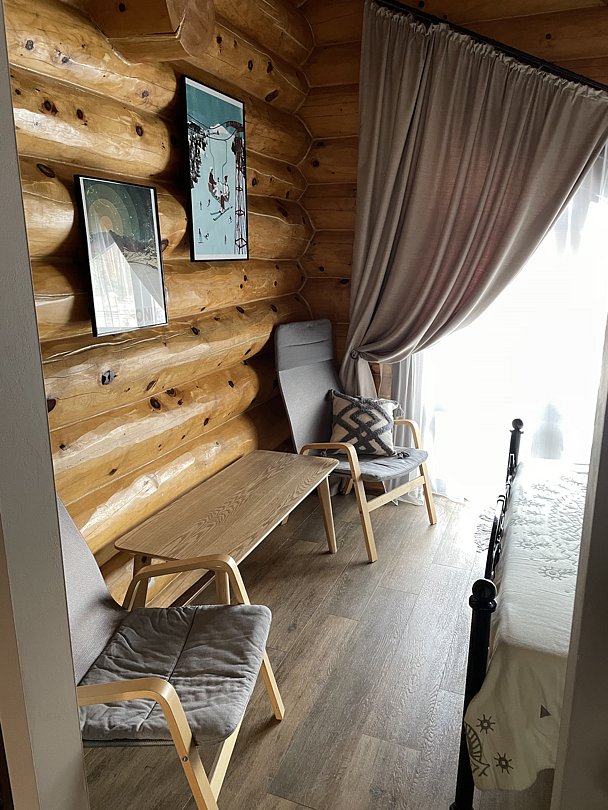 Малая половина Шале "Рыжий Кот" идеально подходит для небольшой компании или семьи. Здесь вы найдете всё, что нужно для комфортного отдыха в уютной и стильной обстановке.