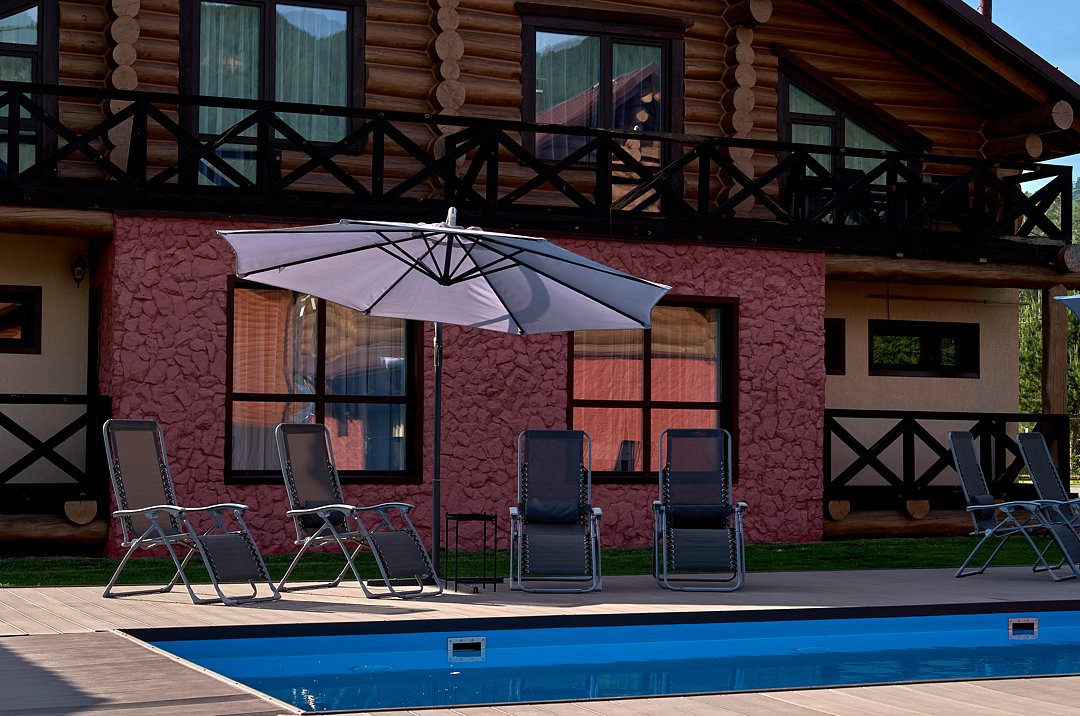 Бассейн находится рядом с домом «Большая половина Шале «Рыжий Кот».