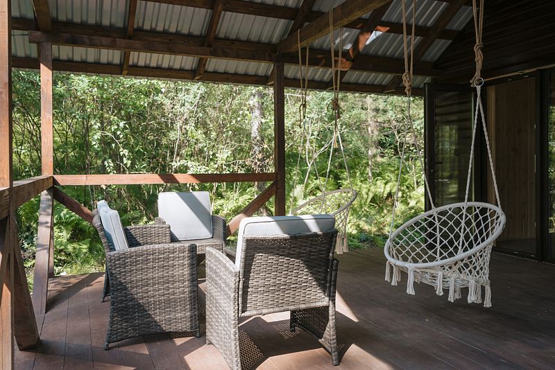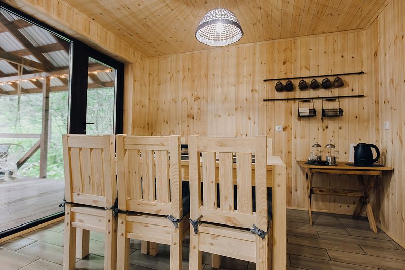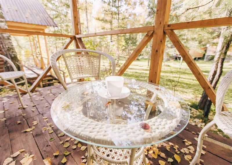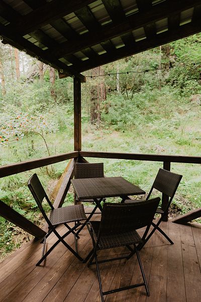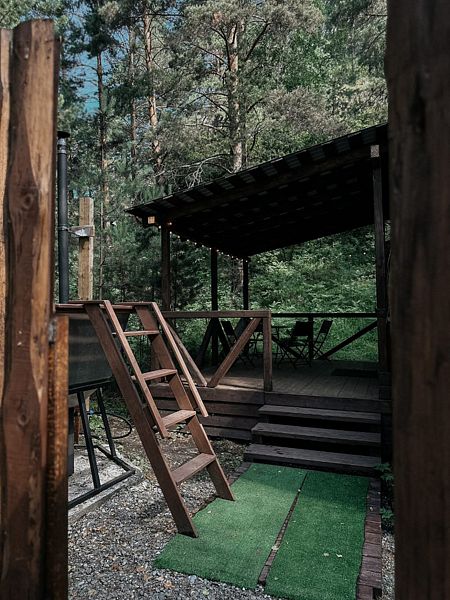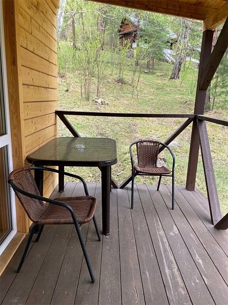 А если вы захотите еще большего взаимодействия с естественной средой, то сможете переместиться на небольшую открытую веранду, прилегающую к бане. В таком случае получится не только понаблюдать за наполненной жизнью природой, но и насладиться ароматом разнотравья и свежим воздухом Алтая!