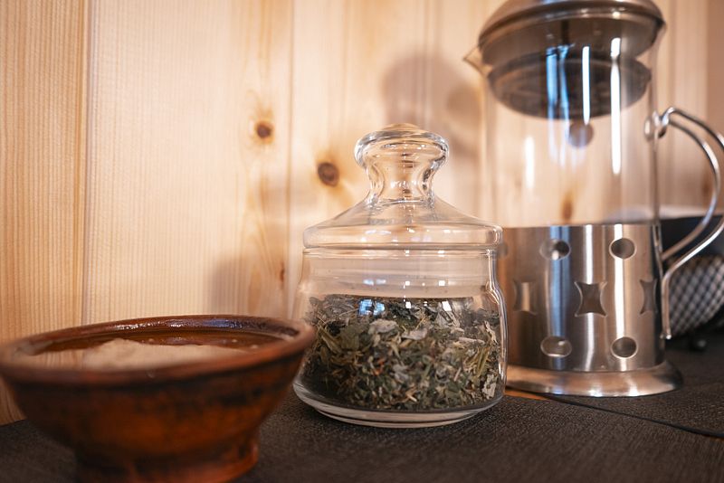 Аромо-саше из целебных алтайских трав или сосновые лапки для запаривания в чане предоставляется по запросу.