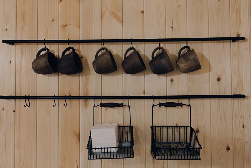 - деревянные столы и лавки;