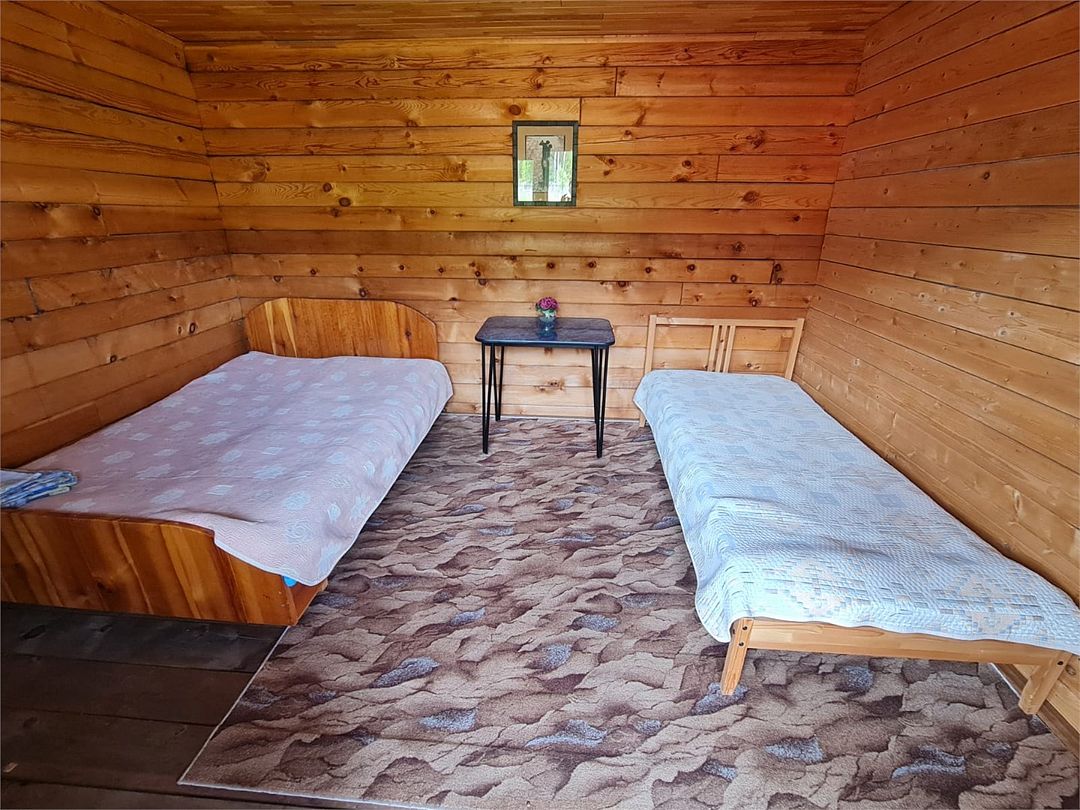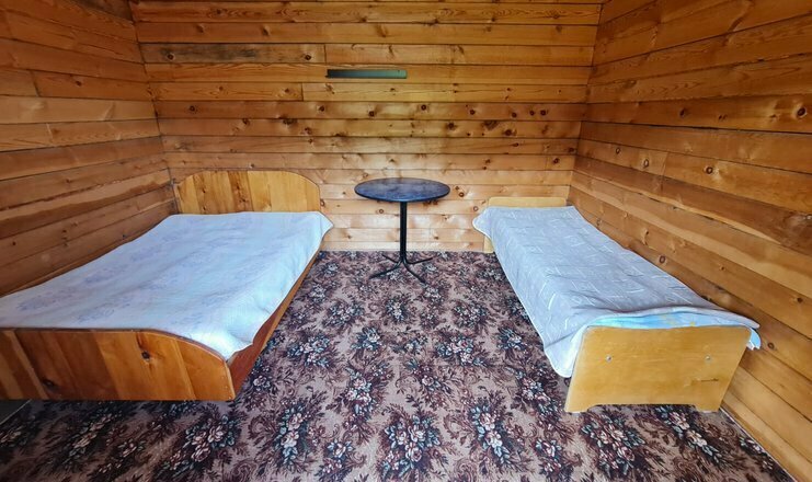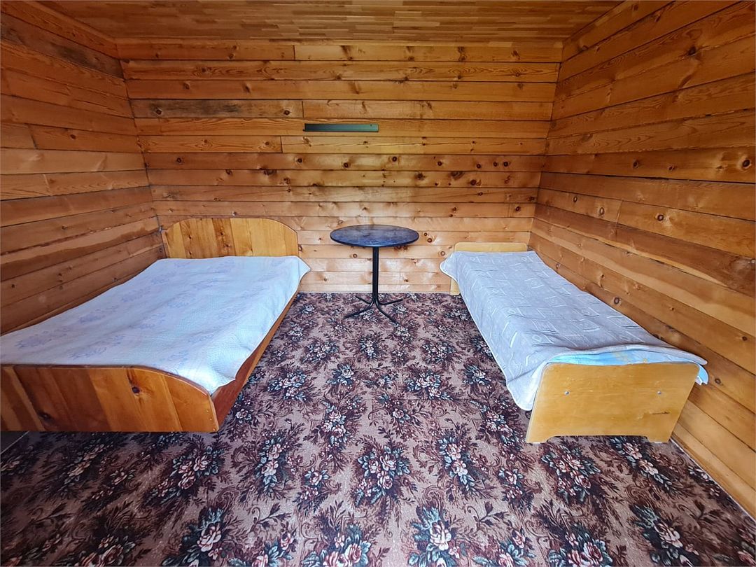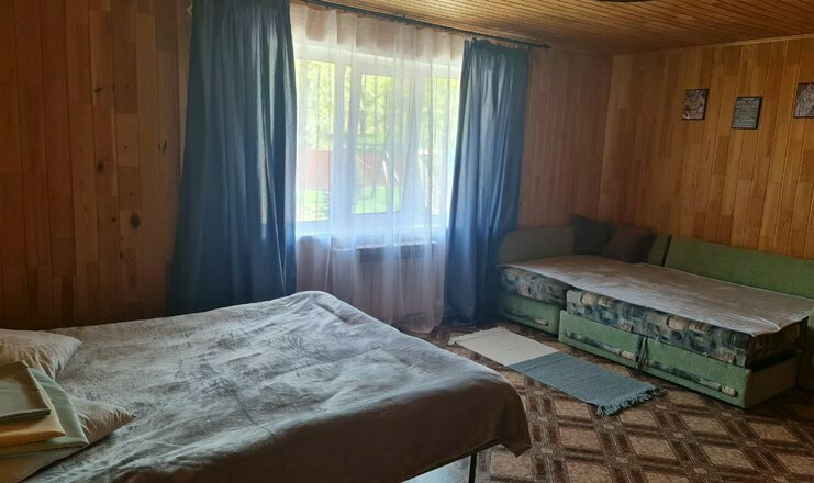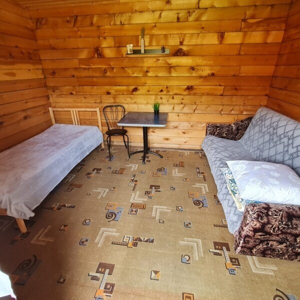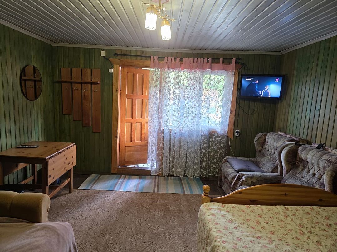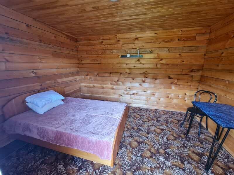 Номер в отапливаемом гостевом доме, двуспальная кровать, раскладной диван, телевизор, чайник, стол, с/у и раковина в номере, душ на этаже.