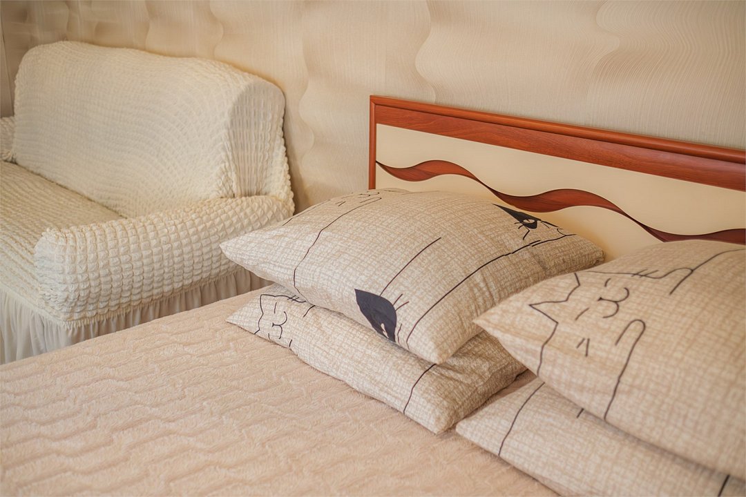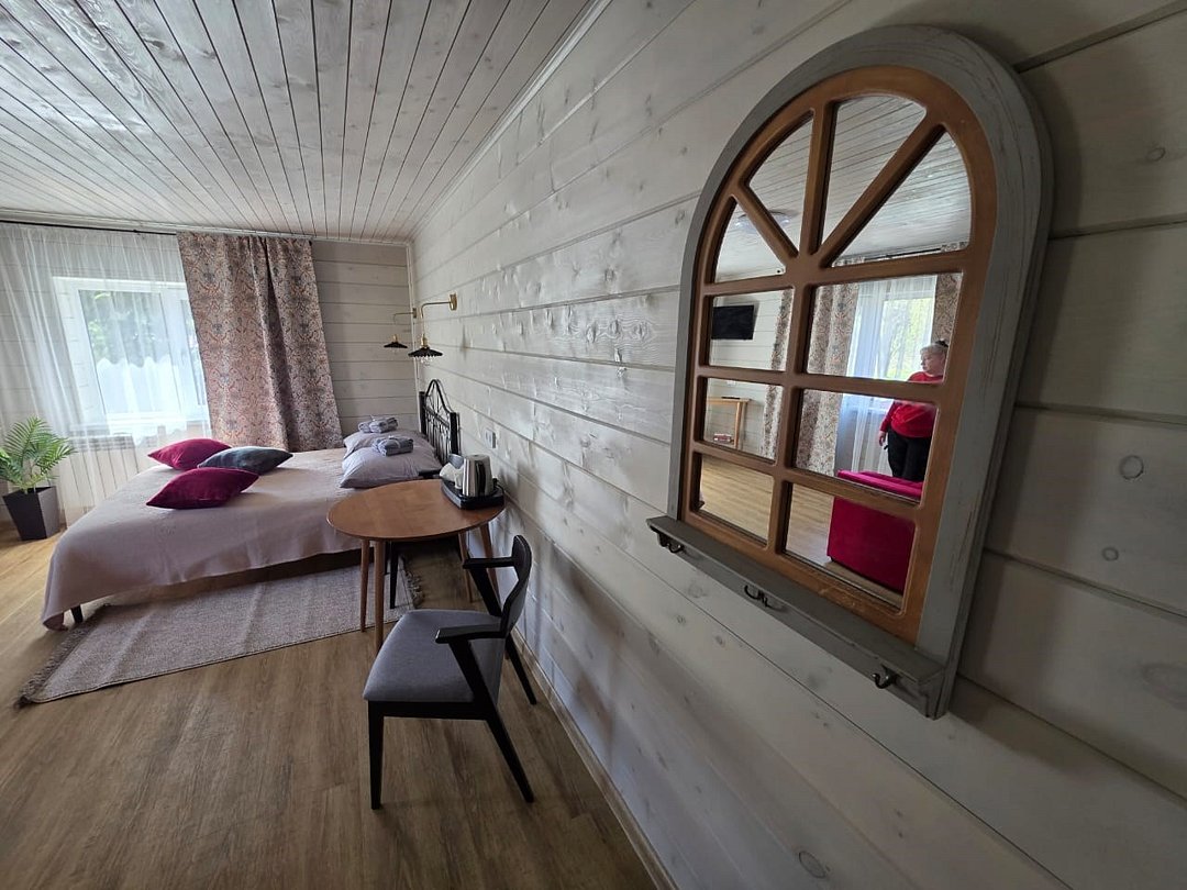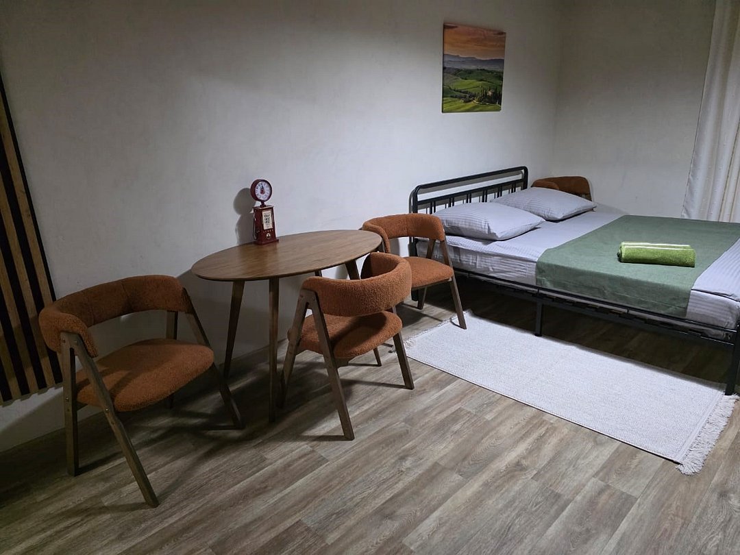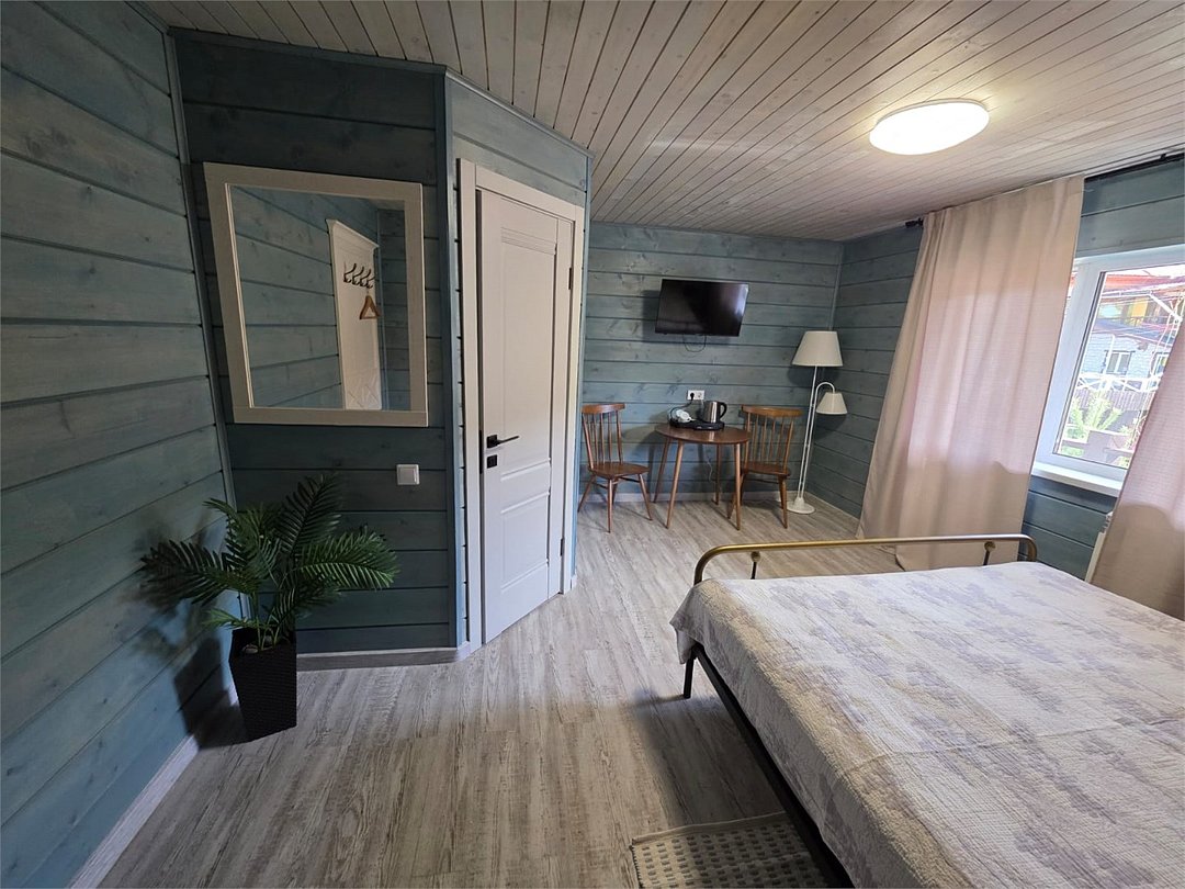 Просторный и светлый номер. Количество мест: 4 Санузел и душ в номере. Чистое пастельное белье Уборка номера каждые 3 дня. Wi-Fi , телевизор В вашем распоряжении открытая беседка с кухней, холодильником, посудой и мангальной зоной Просторная парковка на территории гостевого домаУслуги и удобства