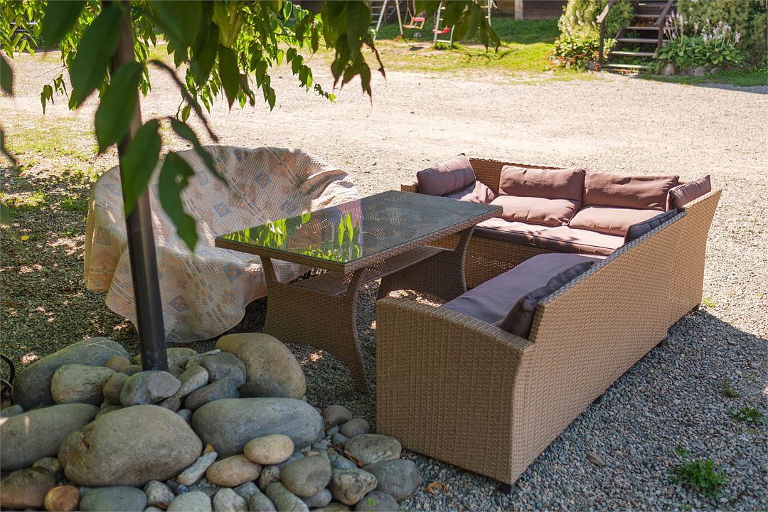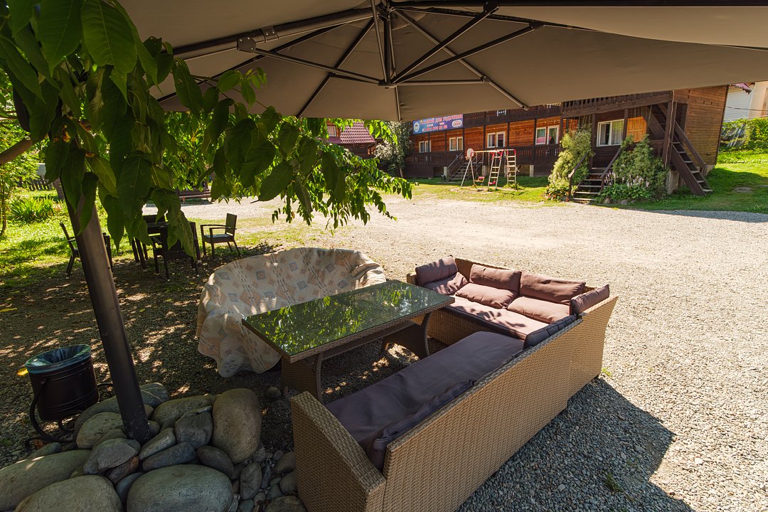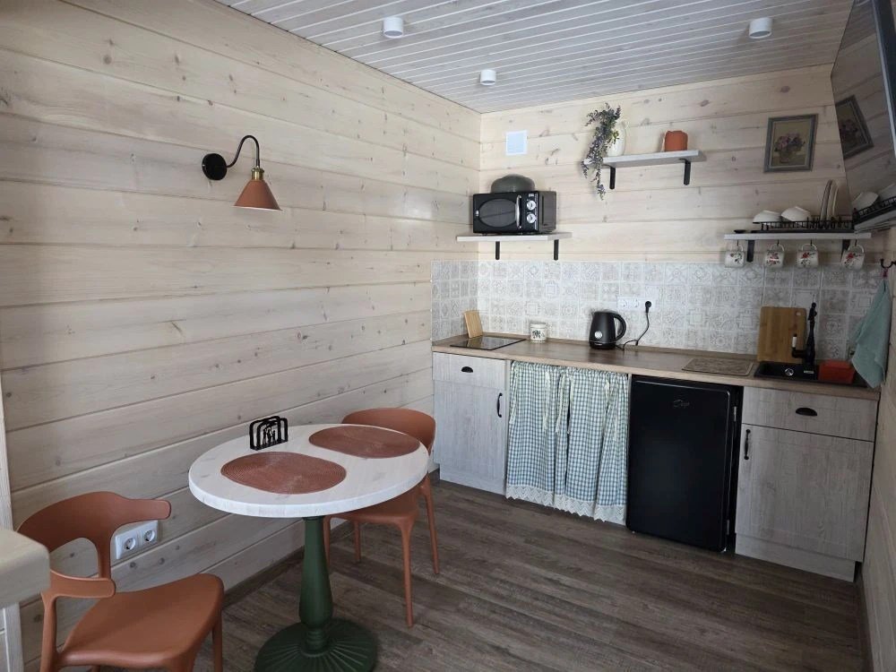 - открытая беседка с кухней, посудой и мангальной зоной (в зимний период общая кухня в гостевом доме).