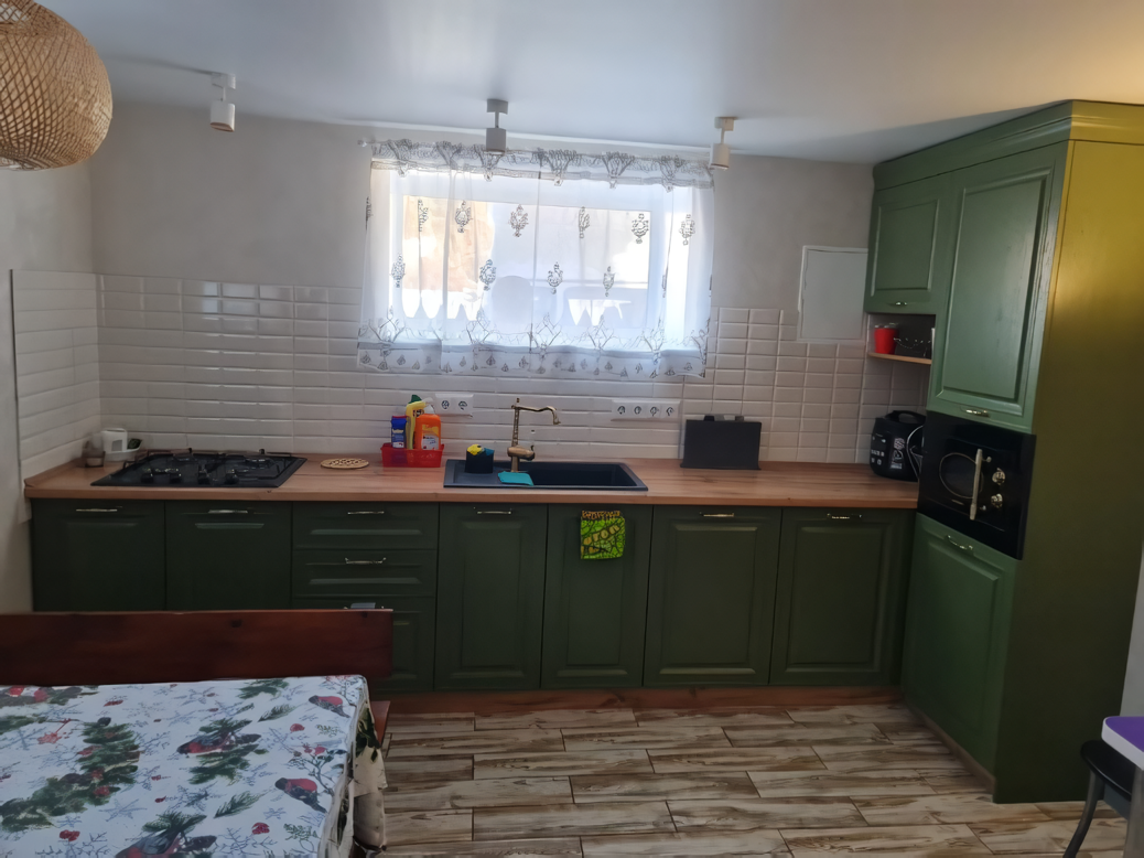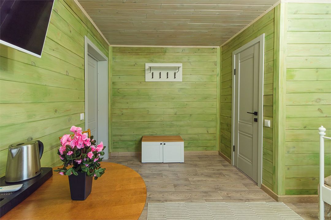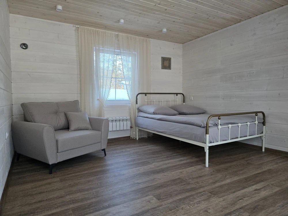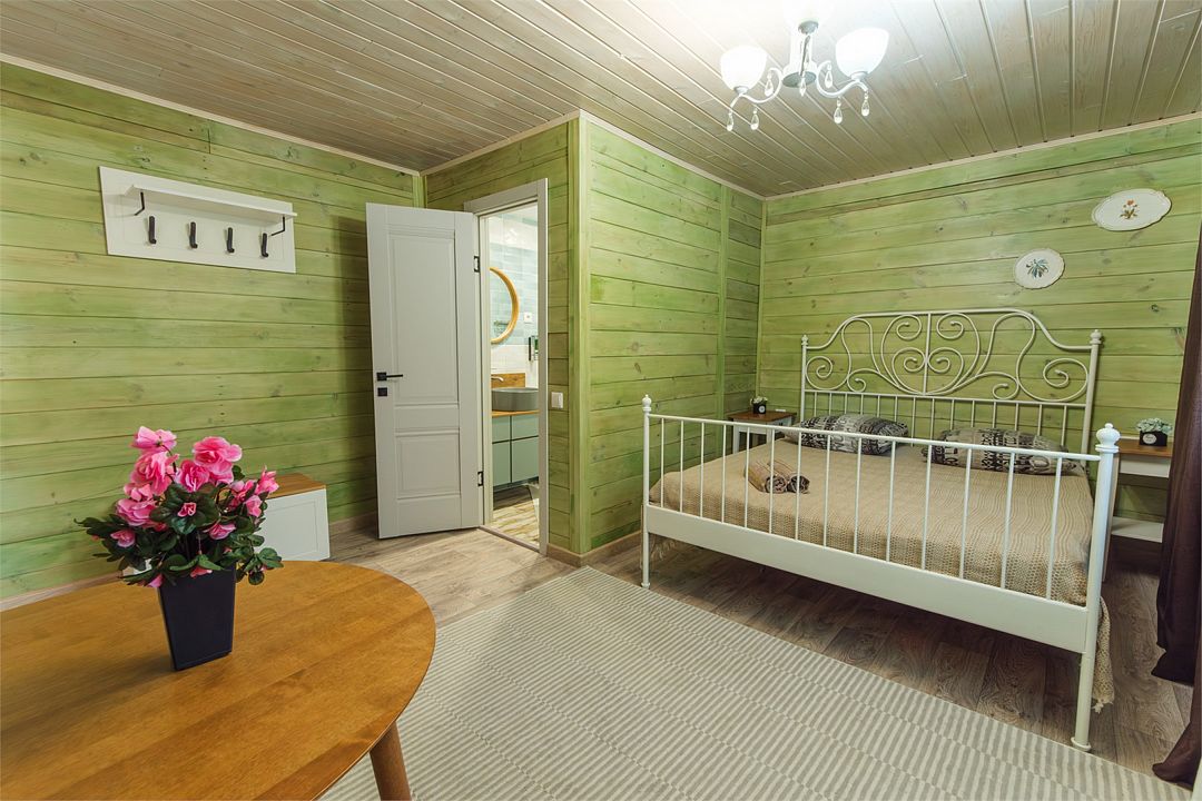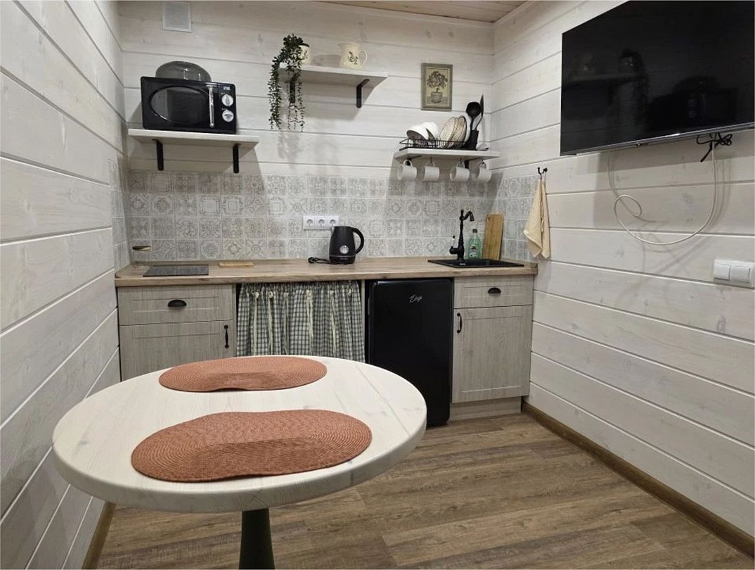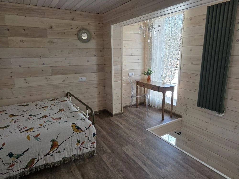 Отдельный вход. Окна в пол. Кухня в номере. Санузел с душем в номере. Чистое постельное белье. Уборка номера каждые 3 дня. Wi-Fi, телевизор. Просторная парковка на территории гостевого дома.