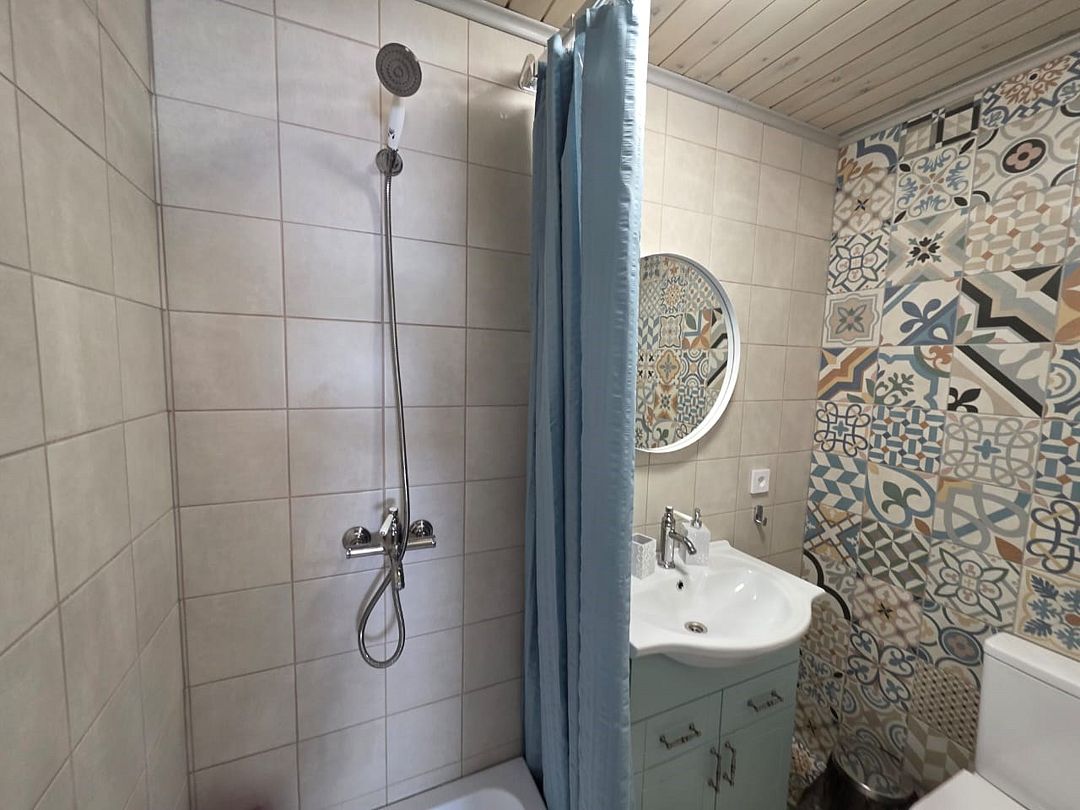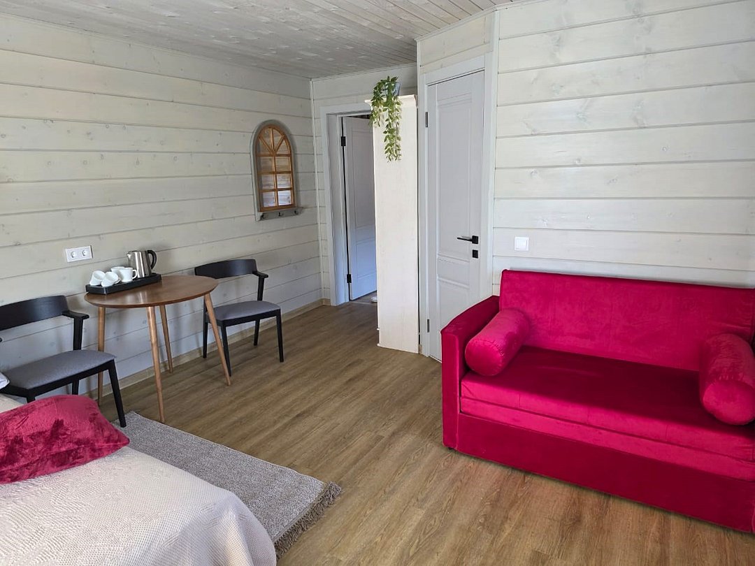 Отдельно стоящий домик. Двуспальная кровать, раскладной диван, два раскладных кресла, с/у на улице, летний душ.