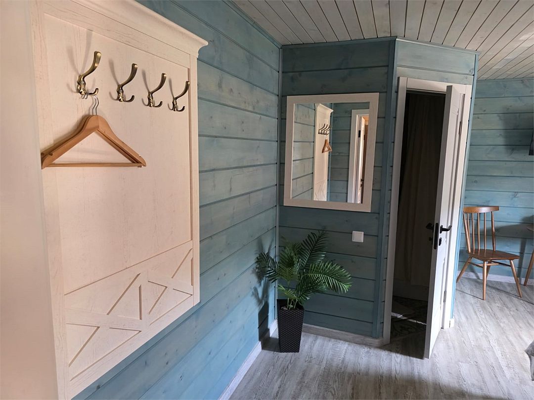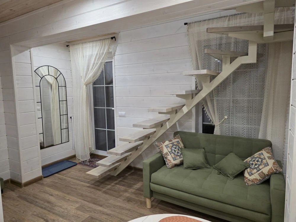 Отдельный вход. Окна в пол. Двухуровневый номер. Личная кухня в номере с чайником, холодильником и кухонной утварью Санузел с душем в номере Чистое постельное белье Уборка номера каждые 3 дня. Wi-Fi, телевизор Просторная парковка на территории гостевого дома