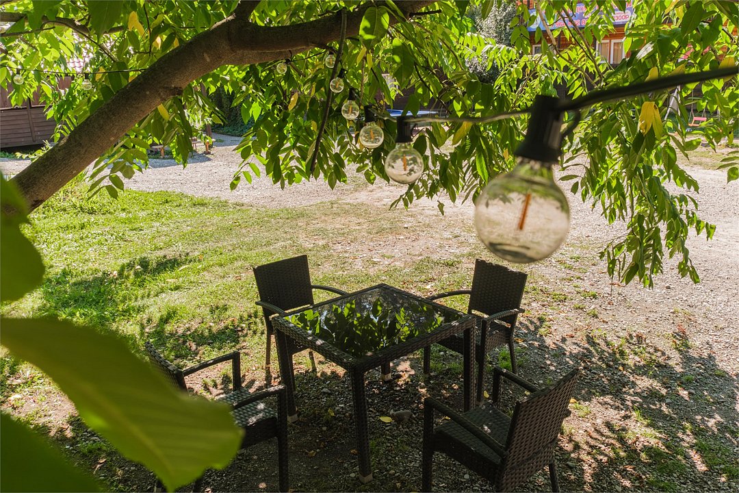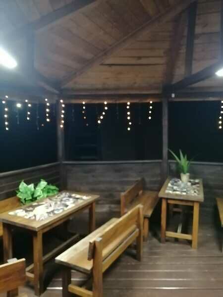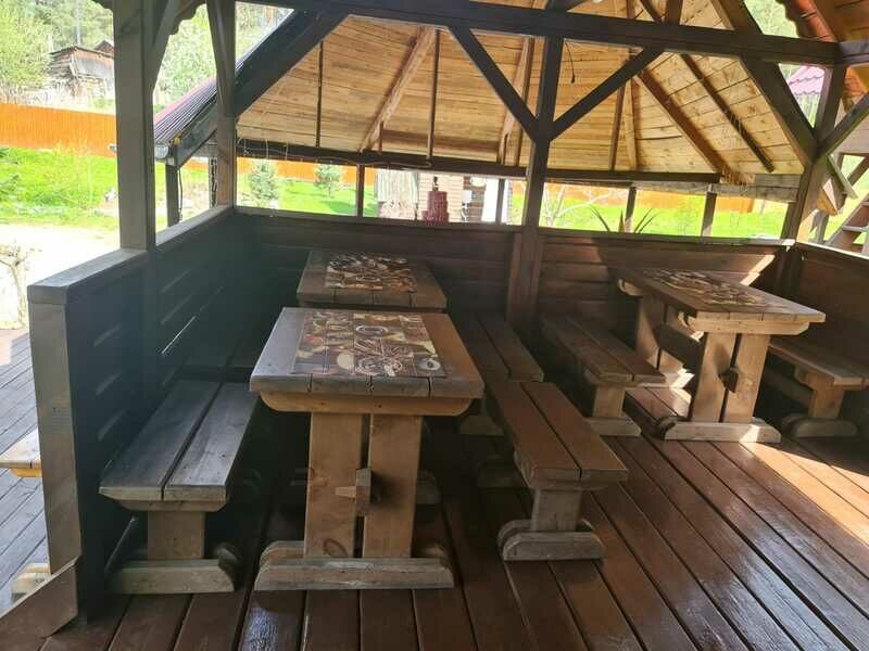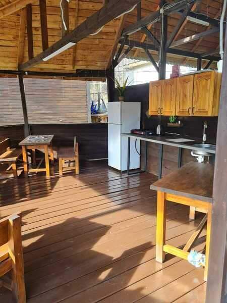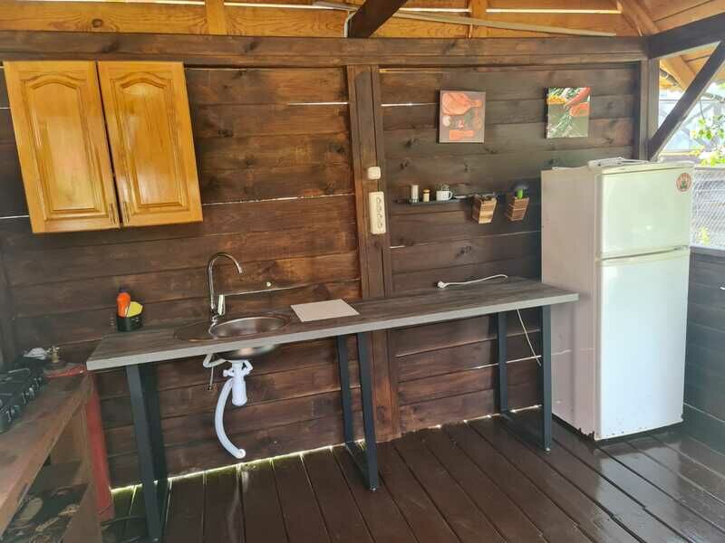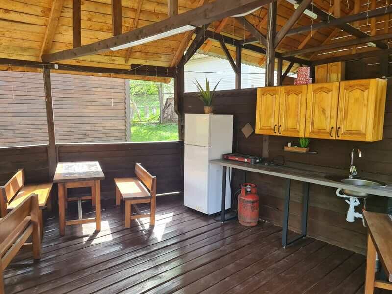 - открытая беседка с кухней, посудой и мангальной зоной (в зимний период общая кухня в гостевом доме)