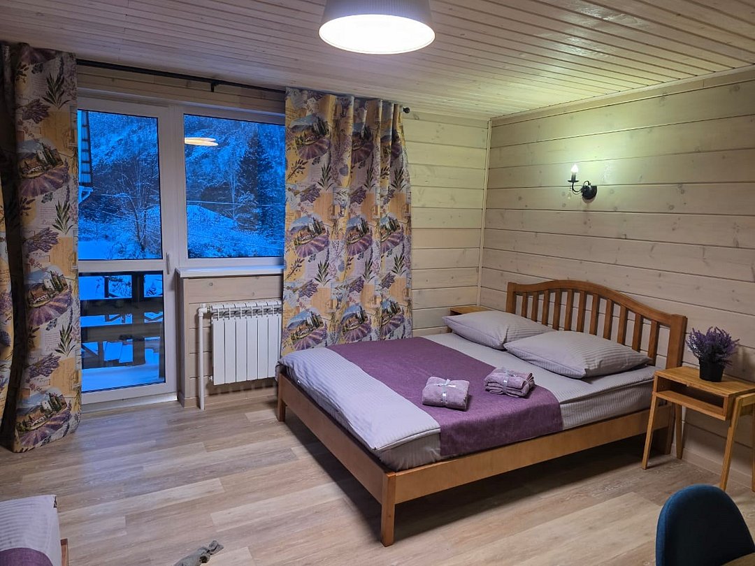 двуспальная кровать, вид во двор, вид на горы, кресло-кроватьВ коттедже