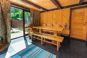 Инфраструктура: зона отдыха, шапочки, душ, березовые веникиМинимальное время аренды: 2 часаПриглашаем дополнить отдых в гостевом доме посещением настоящей русской бани, где вы несомненно укрепите ваше здоровье, расслабитесь и наполнитесь энергией!