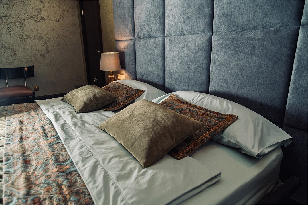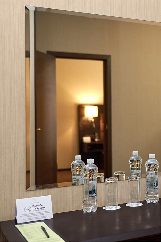 «Люкс» состоит из трёх комнат: 2 спальни и гостиная, рассчитан на комфортное размещение до 6 человек. В двух раздельных спальнях расположены большие кровати размера «King size», в гостиной – диван-кровать, кресла, журнальный столик, телевизор. Номер оборудован кондиционером, сейфом, спутниковым ТВ, телефоном, Wi-Fi, письменным столом. Два санузла. Ванная комната оснащена душевой, банными халатами, полотенцами, тапочками и индивидуальными косметическими принадлежностями.Услуги и удобства