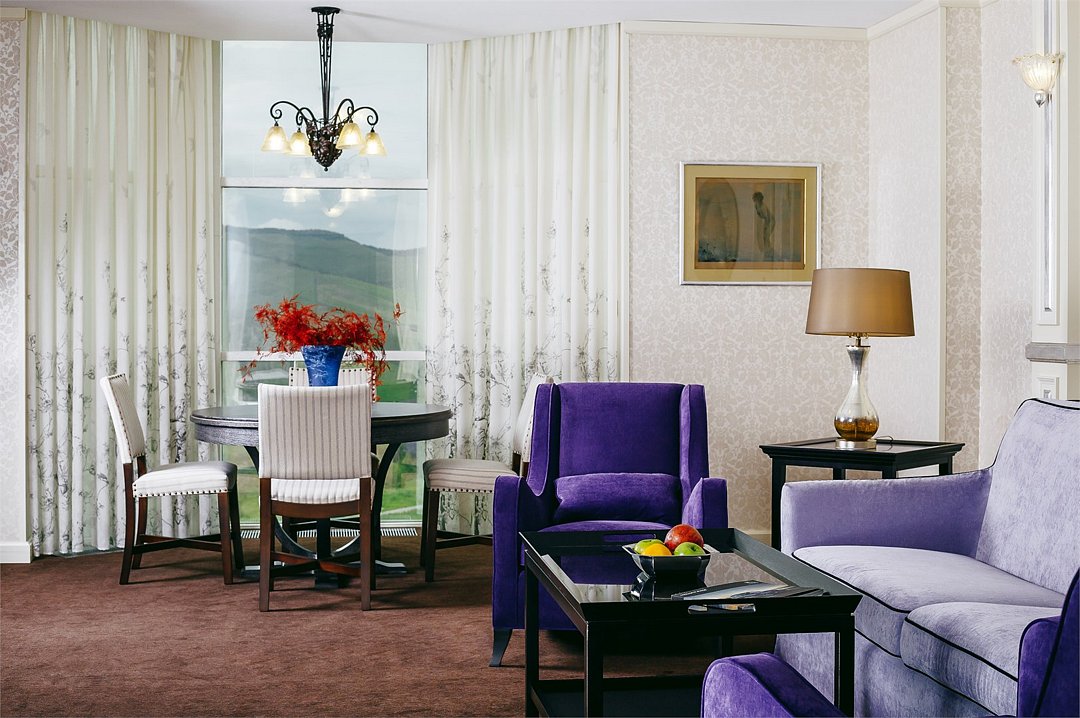два телевизора, кабельное телевидение, Wi-Fi, телефон, кондиционер, светильник, фен, электронные замки, ванная комната, душевая кабина, санузел, дополнительный санузел, халаты, банные полотенца, тапочки, гигиенические средства, косметические средства, кровать «King size», диван, кресла, тумбы, стулья, шкаф для одежды, вешалки, журнальный столик, обеденный стол, зеркало, комод, эксклюзивная мебель, чайный набор, обслуживание номеров, сейф, минеральная вода, чайник, раковина, мягкая мебель, косметическое зеркало, обеденная зона, гостиная зона, ковровое покрытие, отопление, душ, три комнаты, кабинет, кресло, меню подушек, стаканы, столовые приборы, туалетный столик, кофейный столик, стол, тумба, туалетный столик, туалетные средства, туалет, раскладной диван, мини-холодильник, вид на горы, гигиенический душ, два дивана-кровати, набор для приготовления чая и кофе, услуги прачечной (платно), вешалки-плечики, бутилированная вода, мини-бар (платно), СПА, шапочка для душа, мыло, кофеварка, затемняющая штора, без питомцев, массажное креслоВ номере