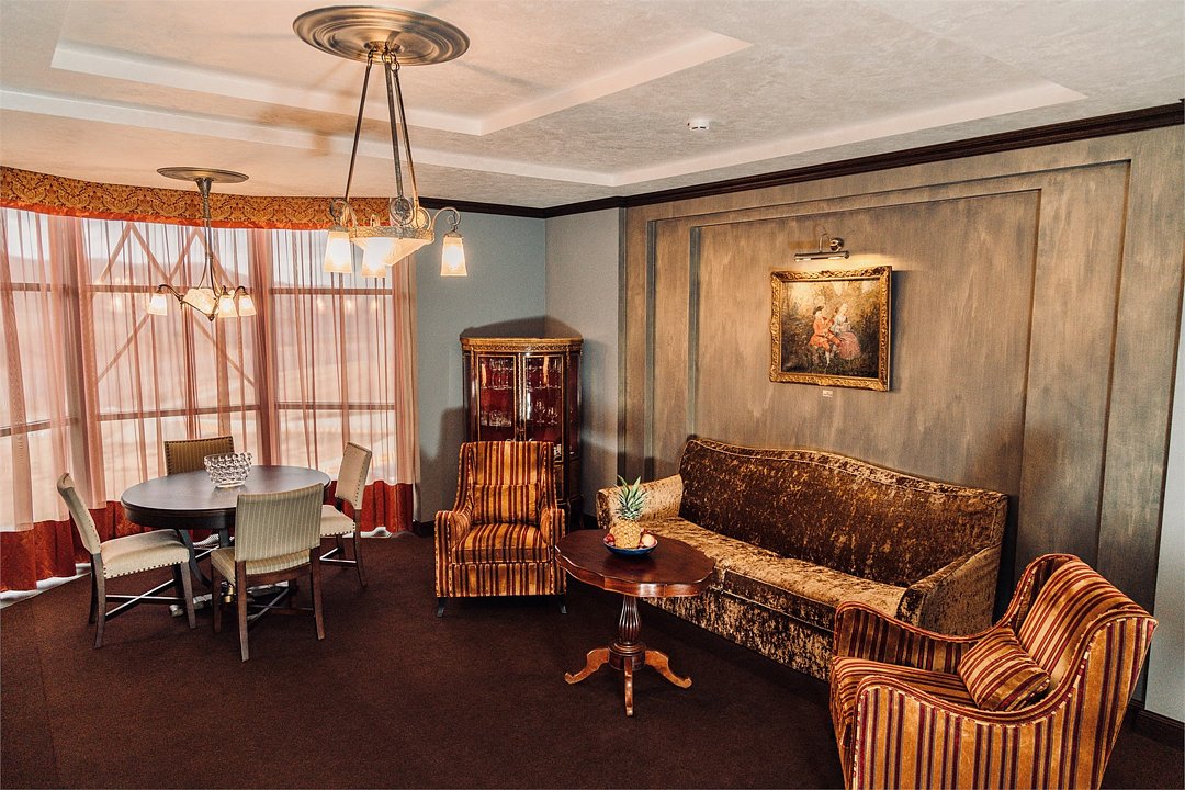 телевизор, два телевизора, спутниковое телевидение, Wi-Fi, телефон, кондиционер, светильник, настольные лампы, фен, электронные замки, утюг, ванная комната, душевая кабина, банные принадлежности, халаты, банные полотенца, тапочки, косметические средства, кровать «King size», гладильная доска, диван, кресла, стулья, шкаф для одежды, вешалки, журнальный столик, письменный стол, обеденный стол, зеркало, комод, эксклюзивная мебель, мебельный гарнитур, две комнаты, чайный набор, обслуживание номеров, сейф, минеральная вода, чайник, унитаз, раковина, мягкая мебель, косметическое зеркало, питьевая вода, обеденная зона, гостиная зона, ковровое покрытие, отопление, кабинет, плиточное покрытие, кресло, вид во двор, без питомцевВ номере