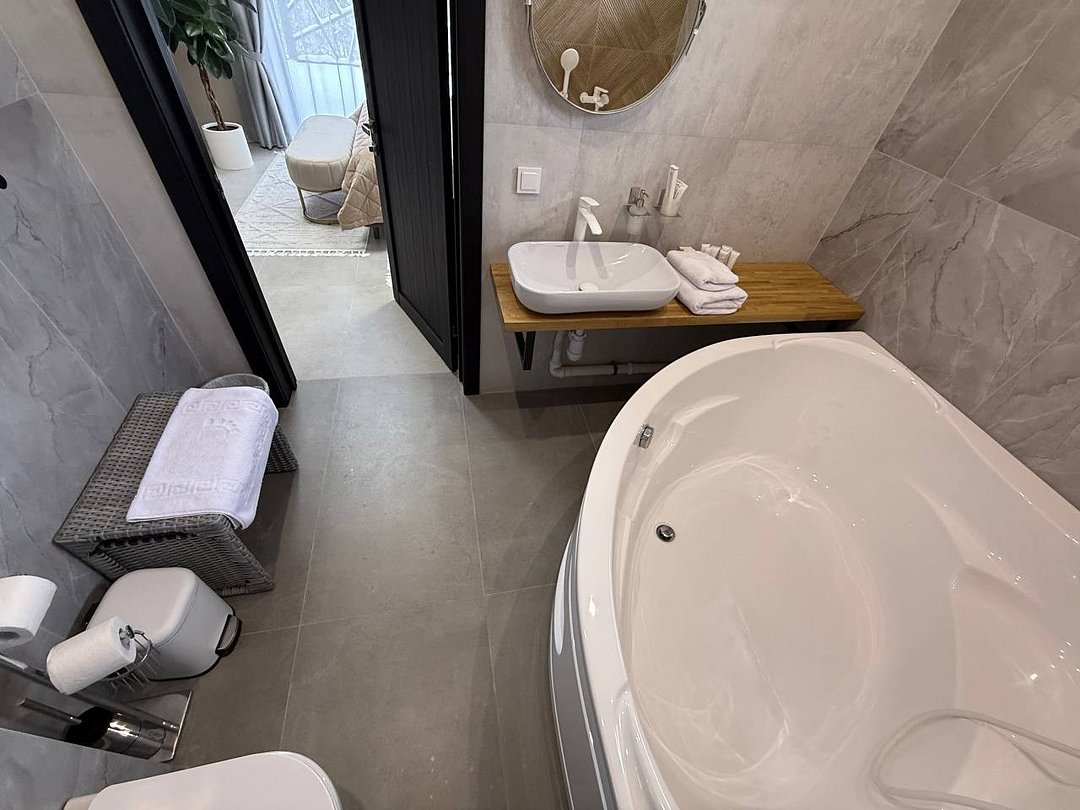 Просторный номер с панорамными окнами, отдельная спальня с ванной комнатой, гостиная совмещенная с кухней.Услуги и удобства