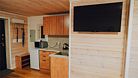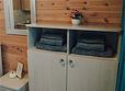 Две односпальные кровати (доп. место раскладушка), телевизор, кондиционер, стол, стулья, оборудованная кухонная зона, холодильник, чайник, микроволновая печь, плита. С/у с душевой. Мангальная зона.