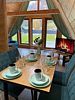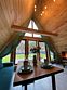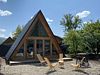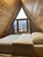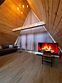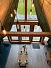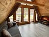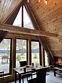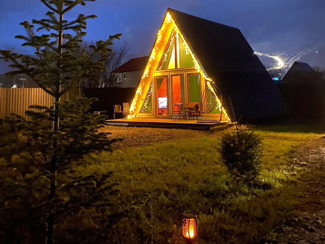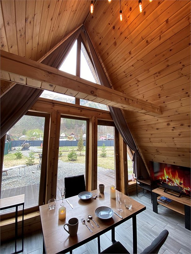 Благоустроенный дом в стиле А-Фрейм с панорамным видом на горы и запахом кедра для уютного проживания.
