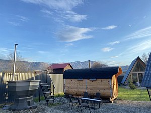 Банный чан для 6 человек с видом на горы и горнолыжные трассы.