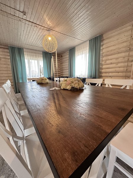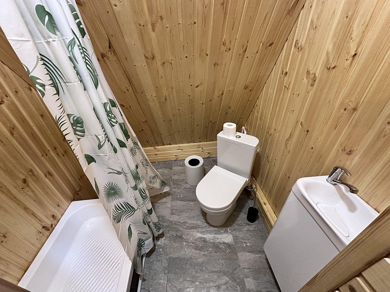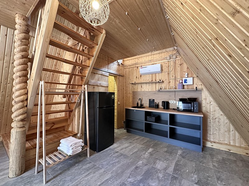 Кухня, гостиная зона со спальным местом (большой диван), столовая зона, душевая + туалет. Идеально подходит для больших компаний, праздников, корпоративов!