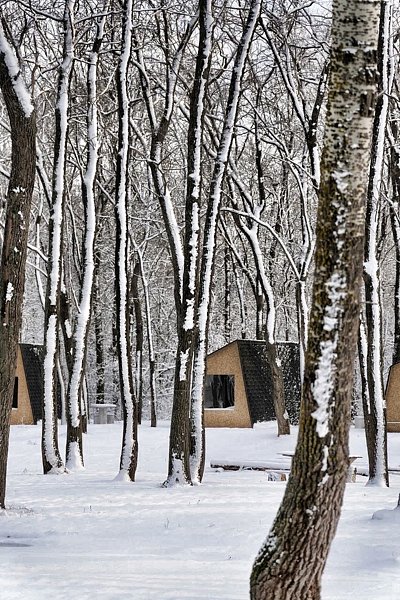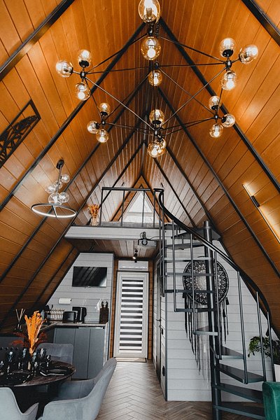 Для вашего удобства есть два дома А-frame с панорамным видом на Волгу. Один большой дом и четыре летних домика с индивидуальной мангальной зоной. Также вы можете арендовать баню.