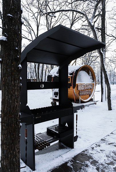 В каждой беседке имеется освещение, музыкальная колонка, розетки, холодильник, посуда, мангальная зона. Угли и розжиг можете приобрести за доп. плату ( угли 300 ₽ / розжиг 200 ₽)