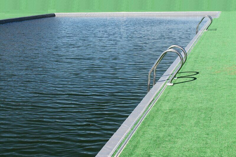 На огороженной территории под открытым небом расположен просторный плавательный бассейн с комфортной зоной для загара.