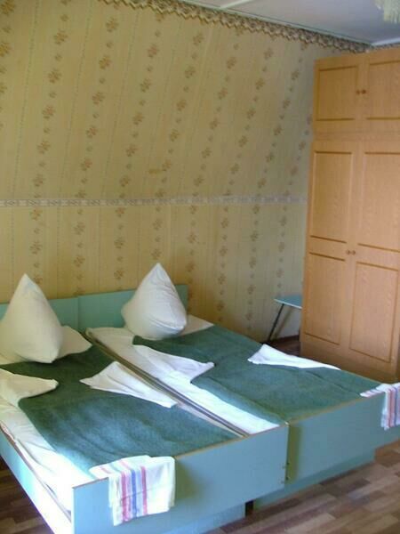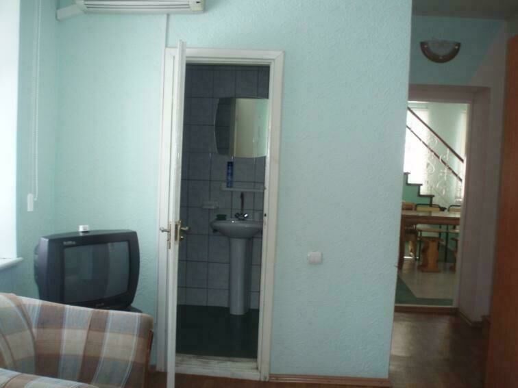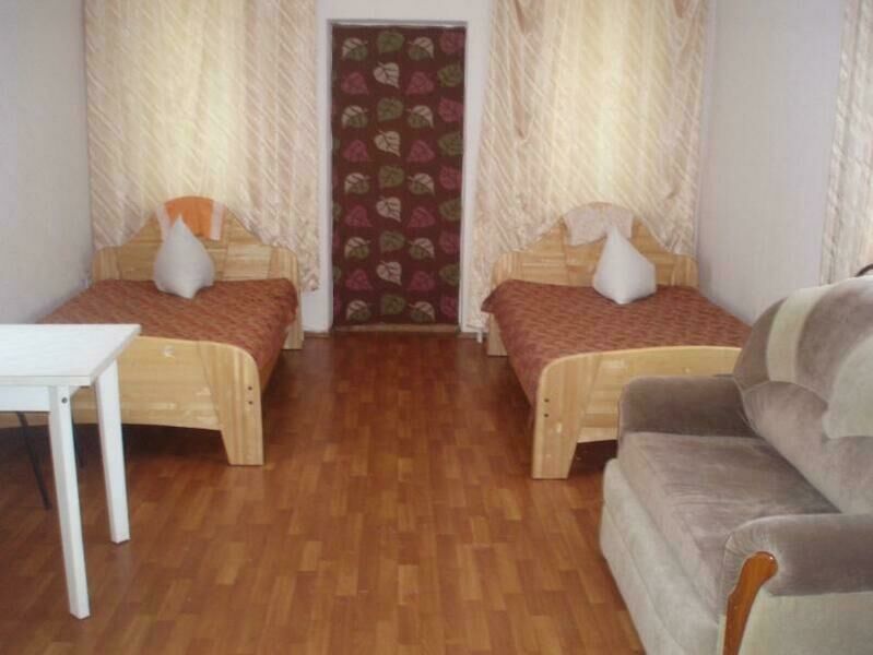 Один этаж, шесть 2-хкомнатных номеров.В каждом номере – две (или три) 1-спальные кровати, санузел с душем, холодильник, телевизор.