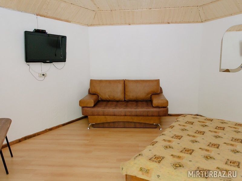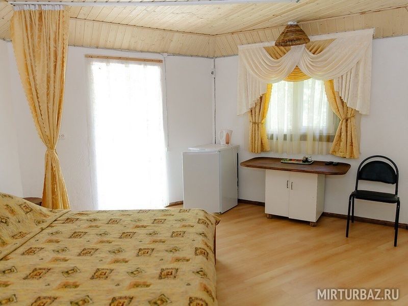 Проживание предоставляется в летних домиках на 2, 3, 4 места с небольшими верандами. Кроме того, имеется жилой корпус, который работает круглогодично.