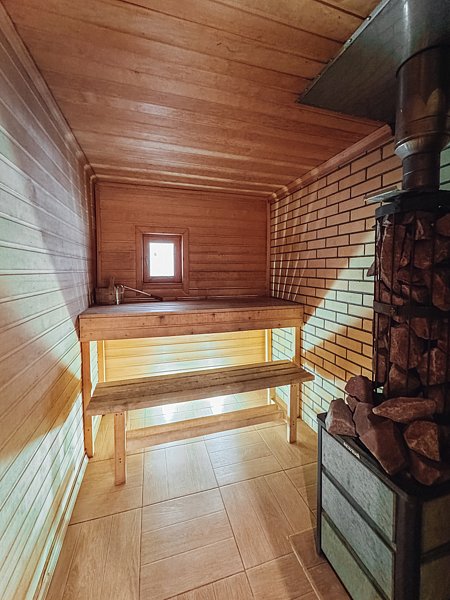 Вы сможете насладиться баней на дровах с комфортным предбанником и панорамными окнами, открывающими вид на озеро. В цену проживания в гостевом доме входят три посещения бани, после чего стоимость составит 3000 ₽ за каждое последующее посещение.