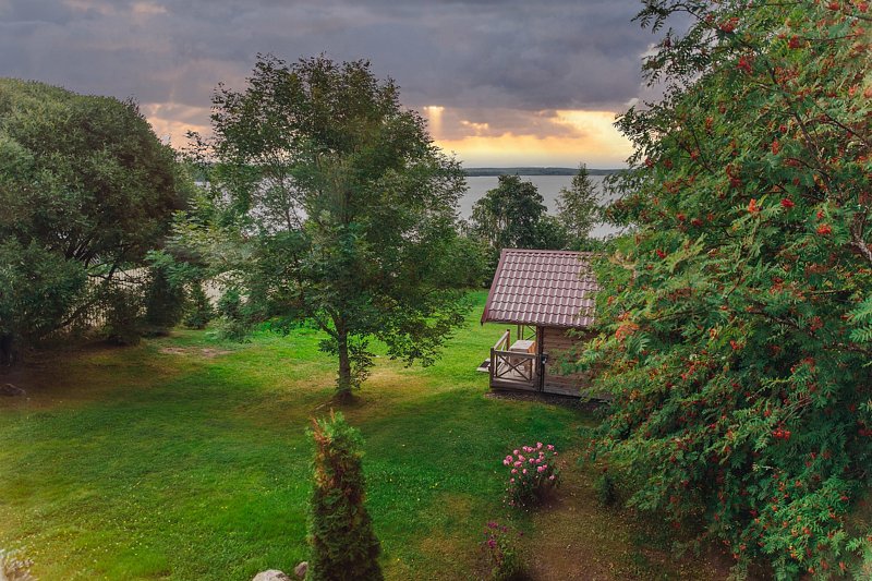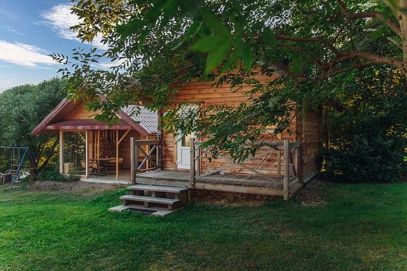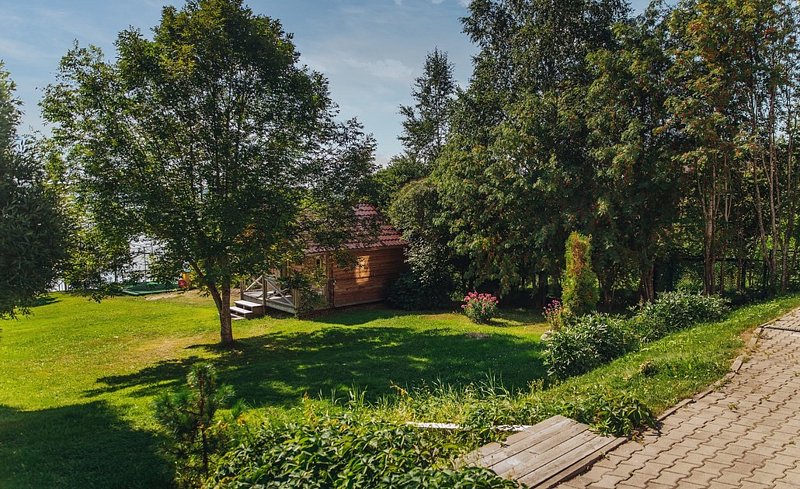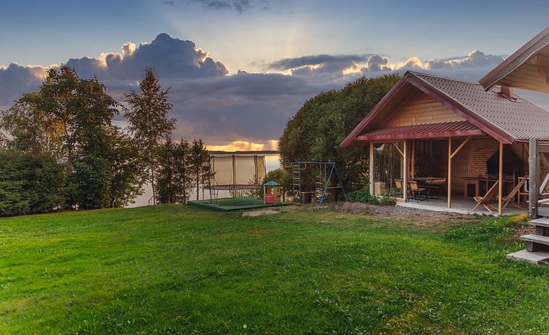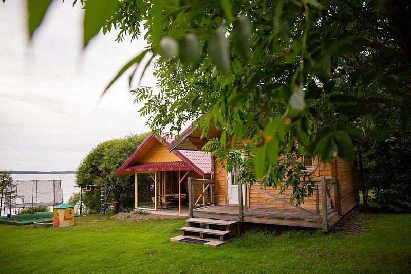 Семейный отдыхДостоинстваОчень-очень красиво. Для ребёнка раздолье: есть лужайка для игр, батуты, можно покупаться в озере, есть лодка для рыбалки и лодка для гребли.