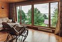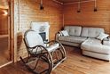 - Комната (18 м. кв) с диваном - кроватью, камин, кресло-качалка, панорамные окна с видом на озеро.