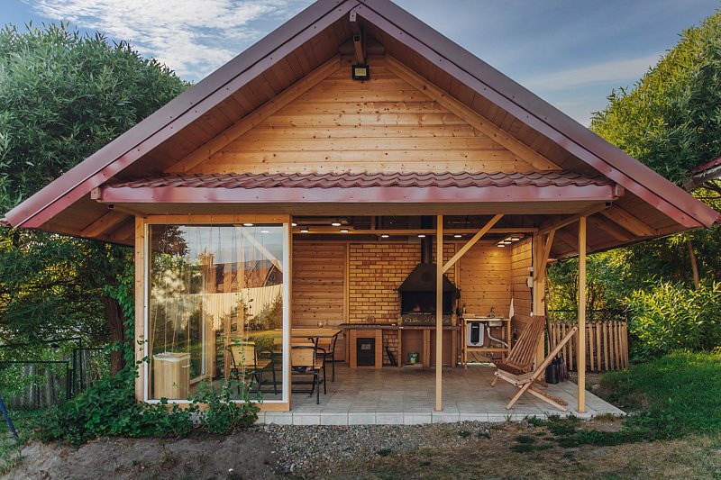 Читать полностьюДля создания полноценной атмосферы отдыха на природе, в непосредственной близости от бани оборудована укрытая от непогоды мангальная зона. Помимо мангала, шампуров и коптильни, здесь также размещены стол со стульями и скамьей, где гости могут с комфортом насладиться приготовленными блюдами, а также уютные садовые кресла-шезлонги, в которых можно расположиться и с удовольствием понаблюдать за окружающими живописными пейзажами.
