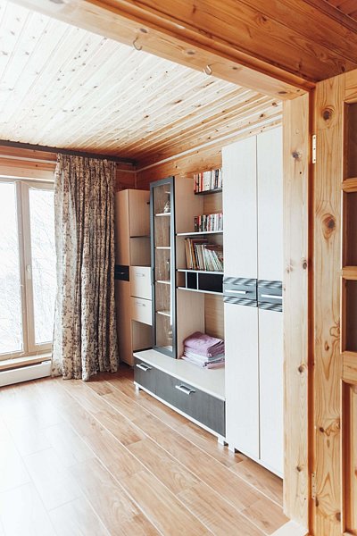 - Большая проходная комната (24 м.кв) - диван-кровать, мебель, кресло, печь;