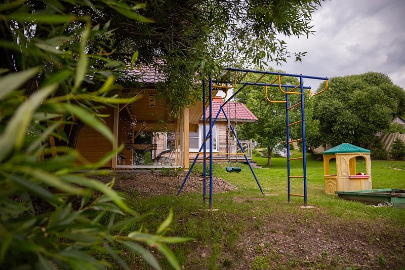 На территории гостевого дома создана детская площадка, где малыши смогут наслаждаться игрой в домике, песочнице, на качелях и турнике, а в летний период доступен батут — все для того, чтобы сделать семейный отдых ярким и запоминающимся.
