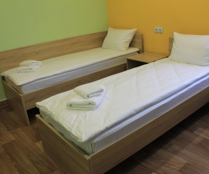 Один 2-х местный номер Эконом с двумя односпальными кроватями, двумя прикроватными тумбами, столом, шкафом для одежды, вешалкой для верхней одежды, туалет, душ на этаже.