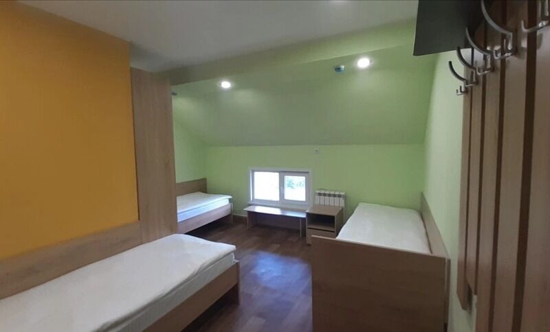 Один 5-и местный номер Эконом с двумя двухъярусными односпальными кроватями и одной односпальной кроватью, двумя прикроватными тумбами, шкафом для одежды, вешалкой для верхней одежды, столиком, туалет, душ на этаже.