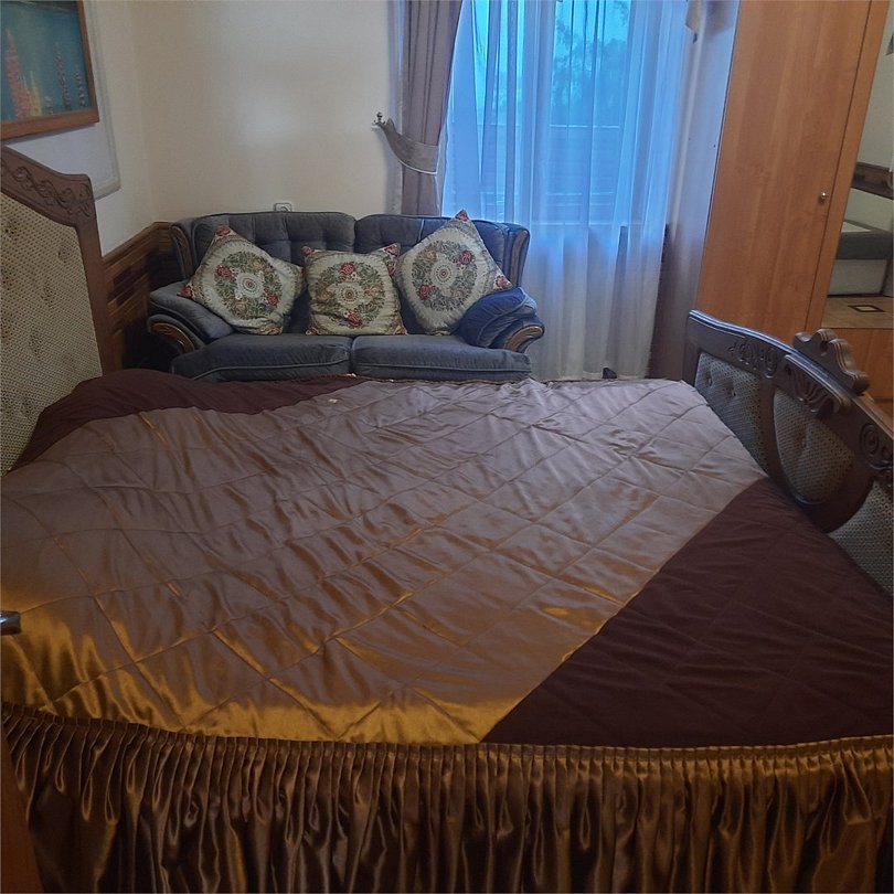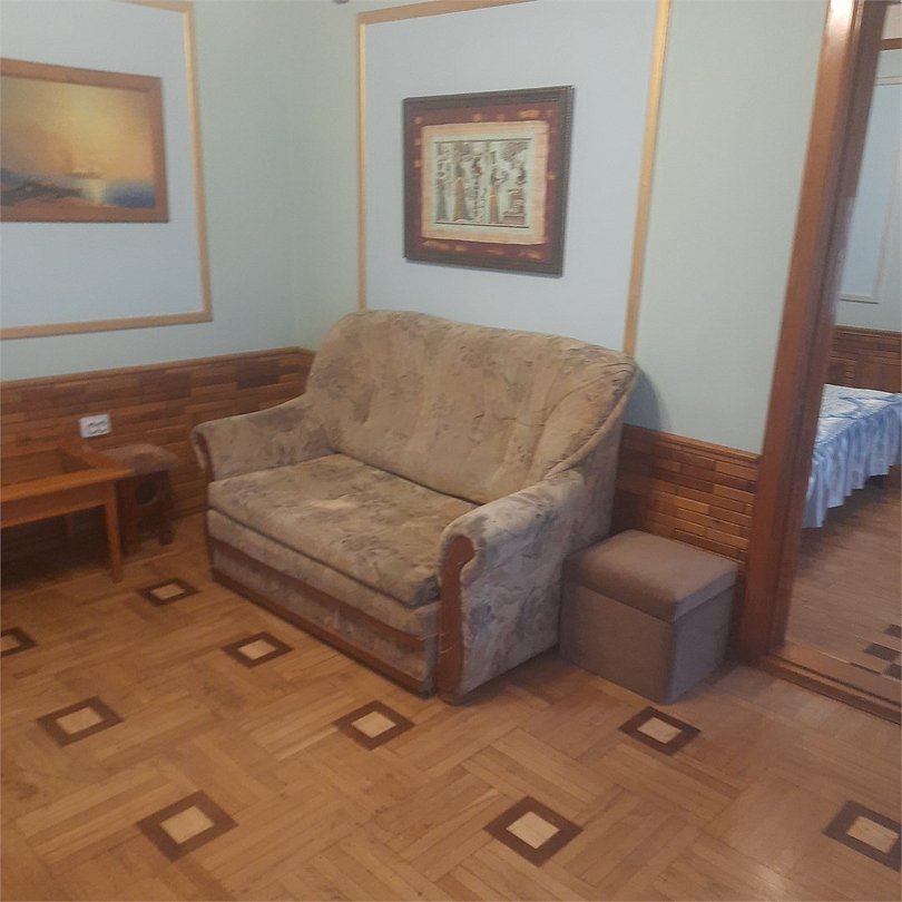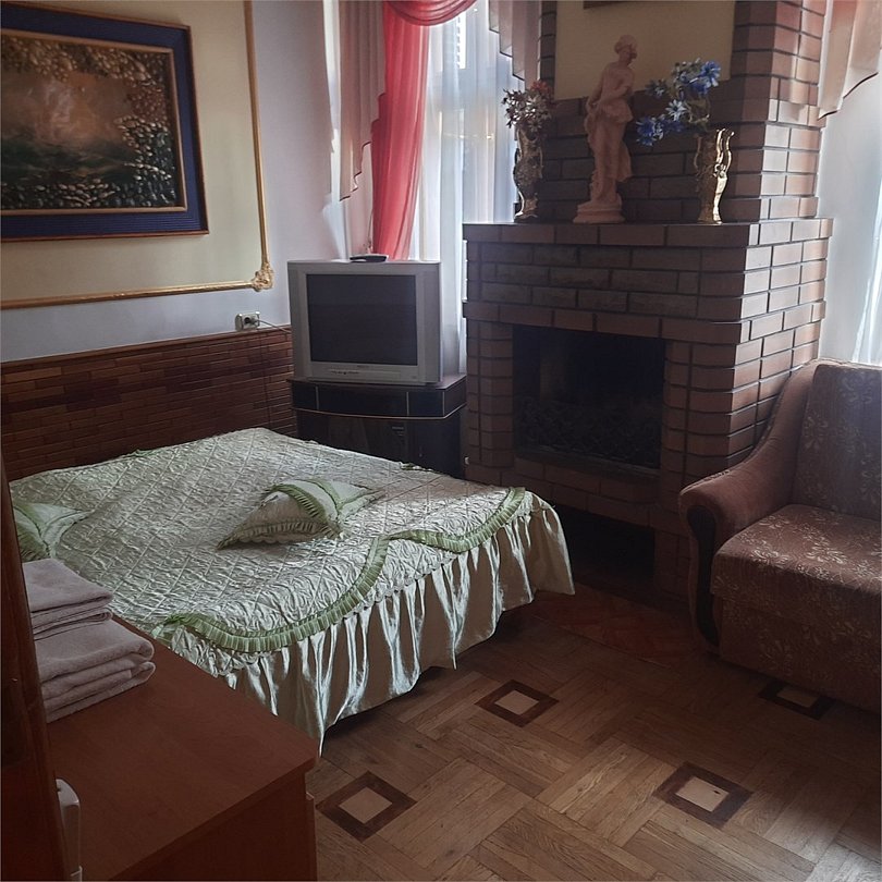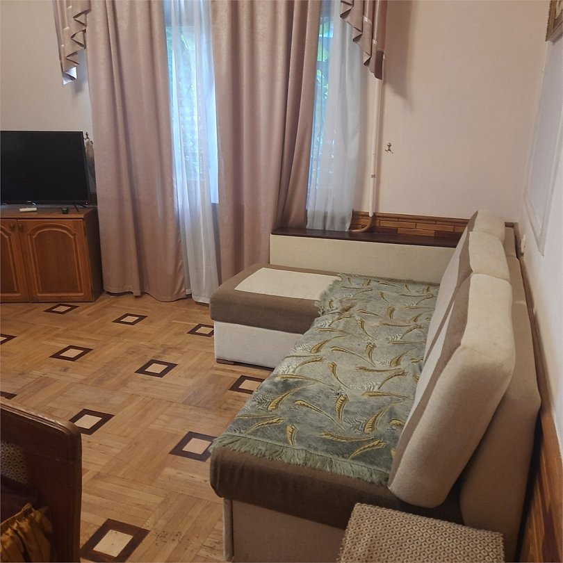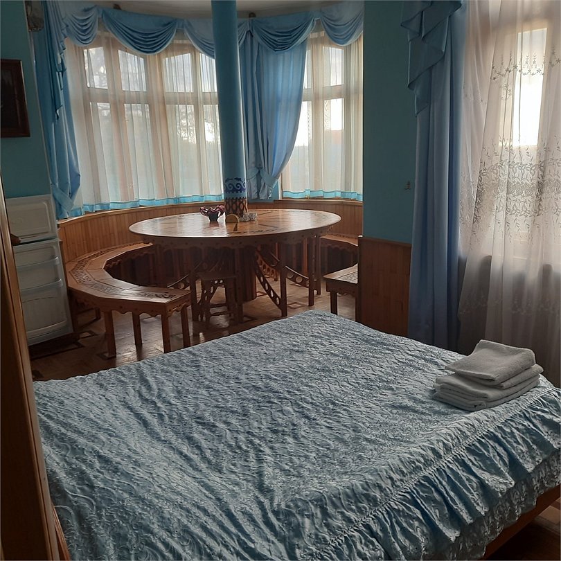 Двухкомнатный номер оснащен сан. узлом телевизором, кондиционером, чайником, холодильником, двух-спальной кроватью и полуторо-спальным диваном. Есть детская кровать для детей до 5-ти лет. Имеет балкон выходящий во двор. Вместимость до 4-х человек.Услуги и удобства