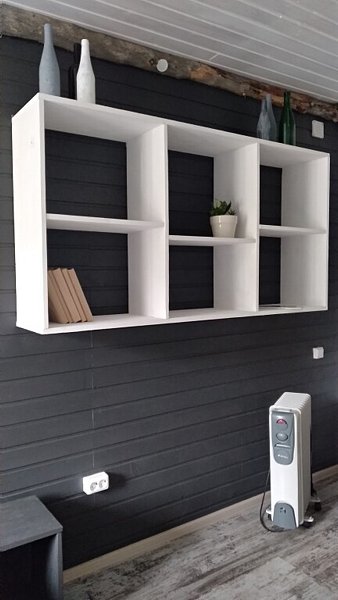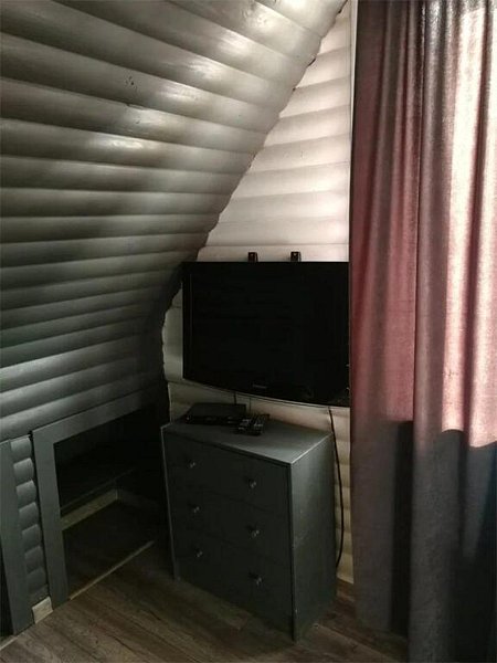 - Кухня-гостиная с раздвижным двуспальным диваном, обеденным столом, телевизором, микроволновой печью и всей необходимой посудой