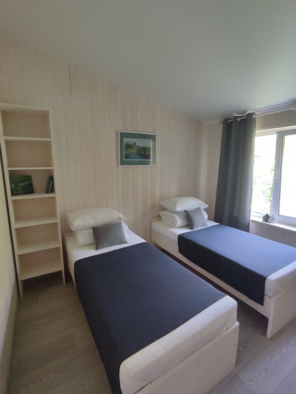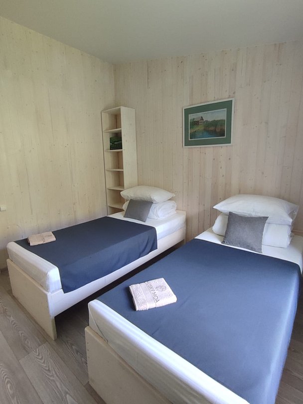 Двухместный номер на 2м этаже в Доме Полярника с 2 отдельными односпальными кроватями. С видом на вольеры с ездовыми собаками.