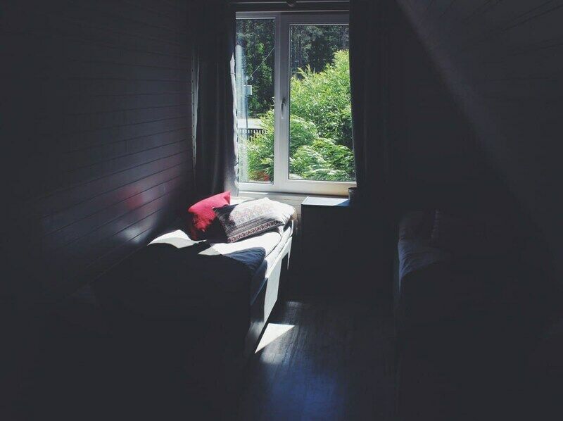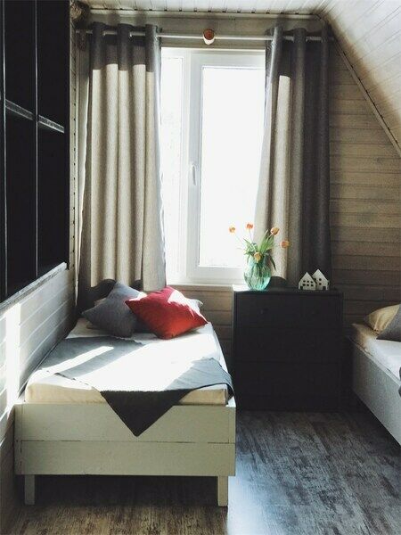 Светлый и уютный номер на 2м этаже Дома Полярника с тремя раздельными кроватями или двуспальной и одной односпальной кроватями. С видом на внутренний дворик.