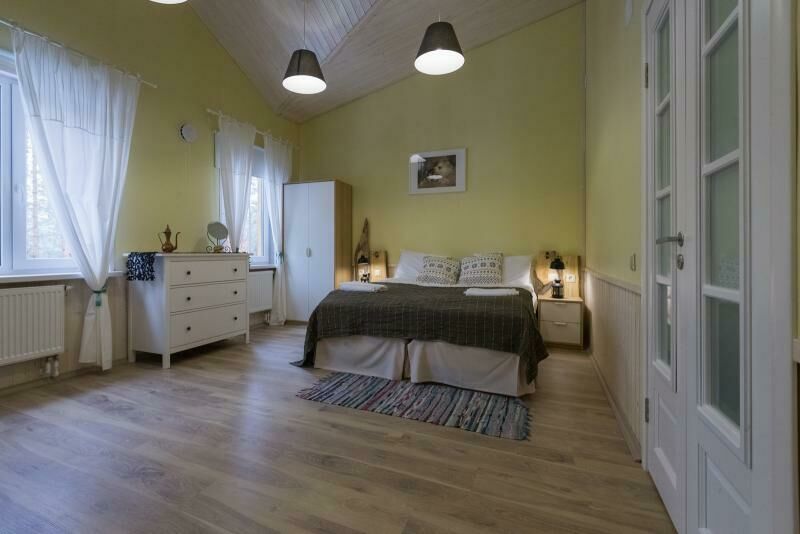 В просторных светлых апартаментах с большой спальней и уютной гостиной есть все для отличного отдыха с семьей или друзьями. Телевизор, диван, полный набор посуды, миникухня.