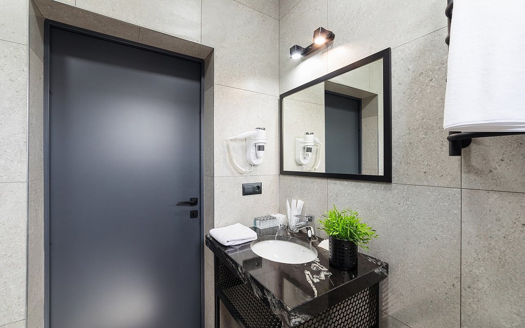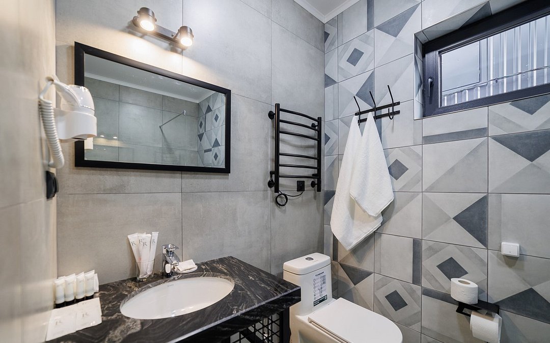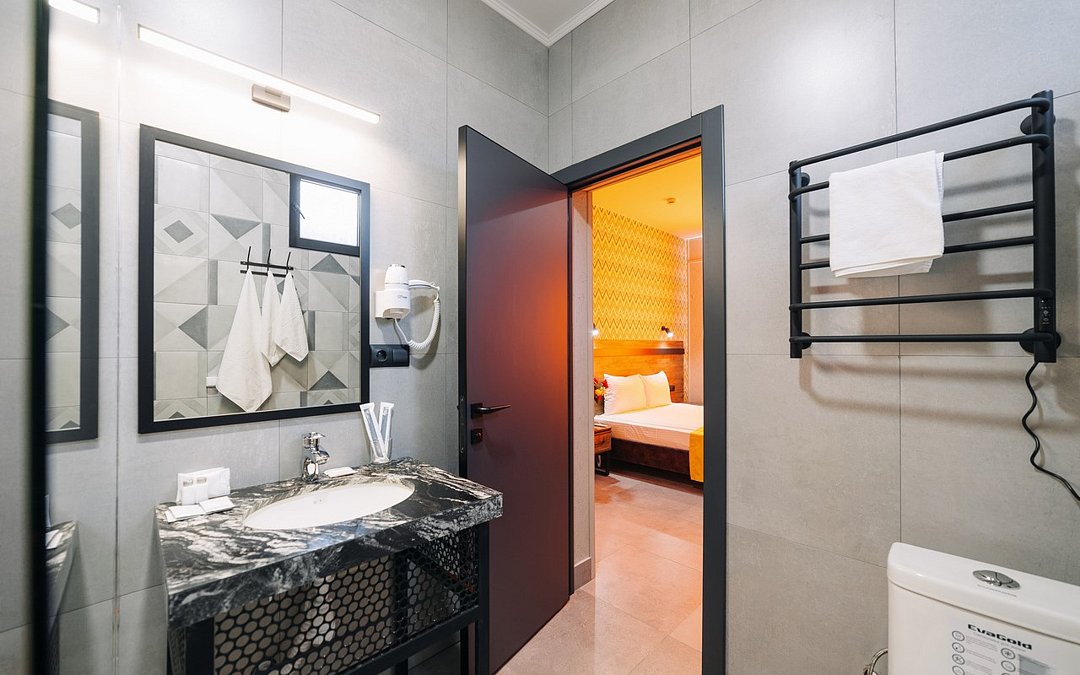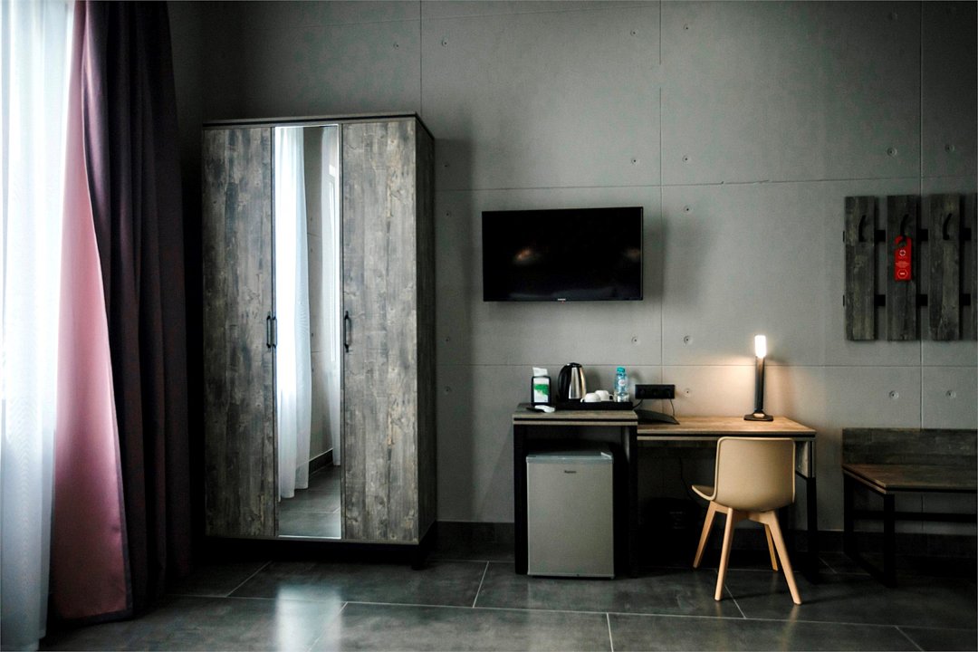 Wi-Fi, телефон, холодильник, светильник, фен, электронные замки, ванная комната, душевая кабина, теплый пол, халаты, банные полотенца, пляжные полотенца, тапочки, косметические средства, двуспальная кровать, стулья, шкаф для одежды, вешалки, письменный стол, багажная тумба, зеркало, письменные принадлежности, чайный набор, информационная карта, меню, сейф, чайник, унитаз, раковина, косметическое зеркало, плиточное покрытие, вид во двор, высокие потолки, стаканы, тумба, туалетные средства, сплит-система, мангал, телевизор со Smart TV, теплые полы, общественный бассейн, фитнес-зона, кресло-кровать, услуги прачечной (платно), вешалки-плечики, бутилированная вода, СПА, шапочка для душаВ номере