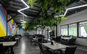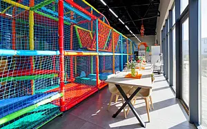 Удобное зонирование позволяет провести бизнес-переговоры, встретиться с друзьями и близкими или собраться дружной и веселой компанией за большим столом. Для маленьких посетителей обустроена детская зона, где они смогут поиграть под присмотром родителей.