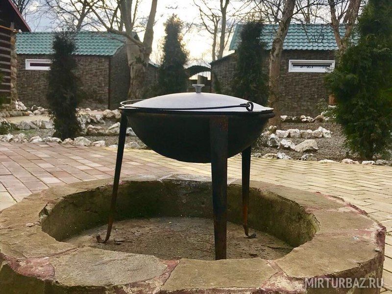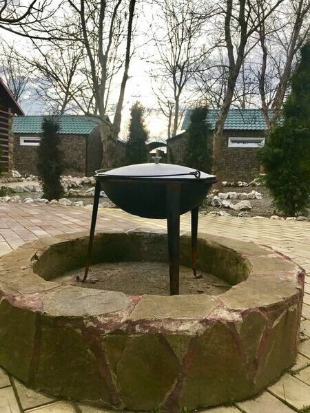 Питание на базе отдыха не предусмотрено. Для самостоятельного приготовления еды имеются уличные каменные печи, принадлежности для барбекю, мангалы. Также есть оборудованные кухни. А в нескольких километрах расположен ресторан и кафе-бар с национальным и европейским меню.