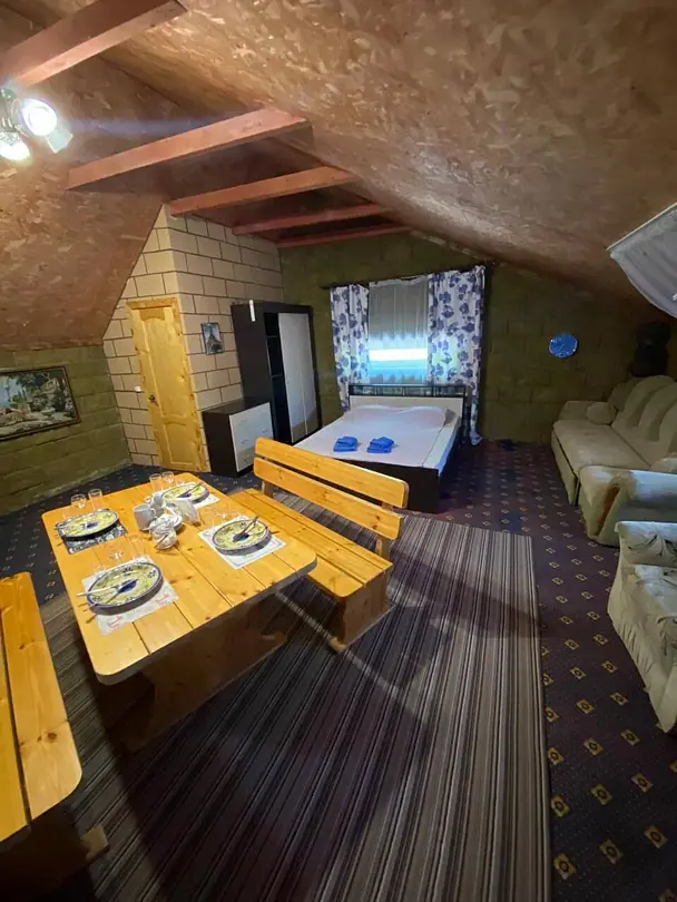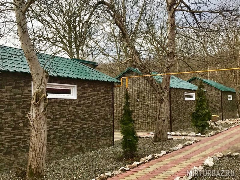 Гостям предлагается заселиться в уютные коттеджи с отдельным входом и небольшой террасой. Дома построены из натурального дерева и камня. Имеются номера категорий «Эконом», «Стандарт» и «Люкс».