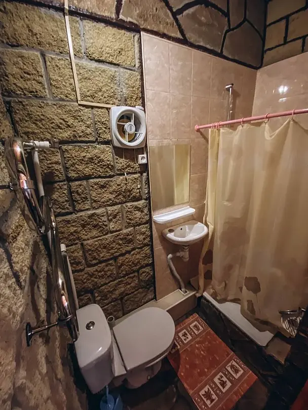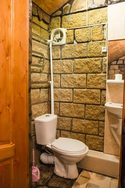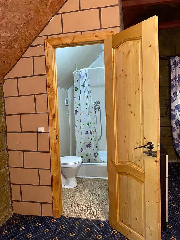 В душевой комнате для удобства гостей имеются туалетные принадлежности, освежитель воздуха и комплект полотенец на каждого гостя. Немаловажное преимущество домика в том, что у него имеется своя зона отдыха: беседка + мангал.