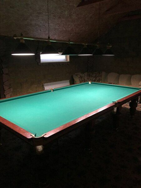 Бильярдный зал оборудован довольно качественным столом, осветительным оборудованием и теми необходимыми мелочами, которые делают игру комфортной для прекрасного времяпровождения гостям. По желанию клиентов зал сдается как на почасовой, так и посуточной основе