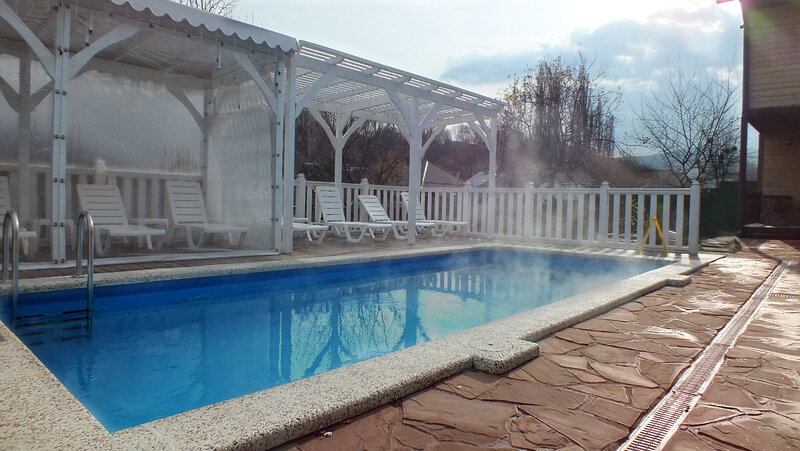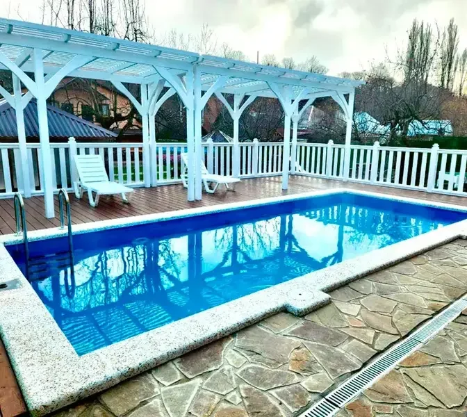 Читать полностьюГостевой дом располагает круглогодичным бассейном с подогревом, поддерживающим комфортную температуру воды в зависимости от сезона. Вода в бассейне проходит регулярную автоматическую дезинфекцию. Рядом с бассейном оборудована зона для загара с удобными лежаками, а в зимнее время предусмотрена закрытая зона для переодевания. Поблизости находится холодильник с напитками, чтобы гости могли освежиться во время водных процедур.