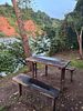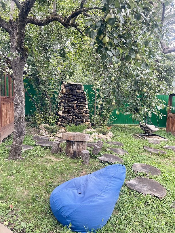 Гостевой дом имеет оборудованную мангальную зону длиной 6 м., на которой имеется кран с водой, шампуры, сетки для жарки, казан для пользования. Также стол и кресла-качалки для наблюдением за огнем. За дополнительную плату можно приобрести дрова, уголь, розжиг.