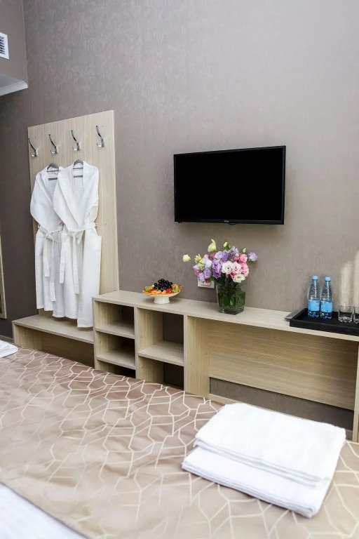 Чтобы вы могли отдохнуть после долгого дня, в номере есть телевизор и халат. Перечисленные услуги есть не во всех номерах.